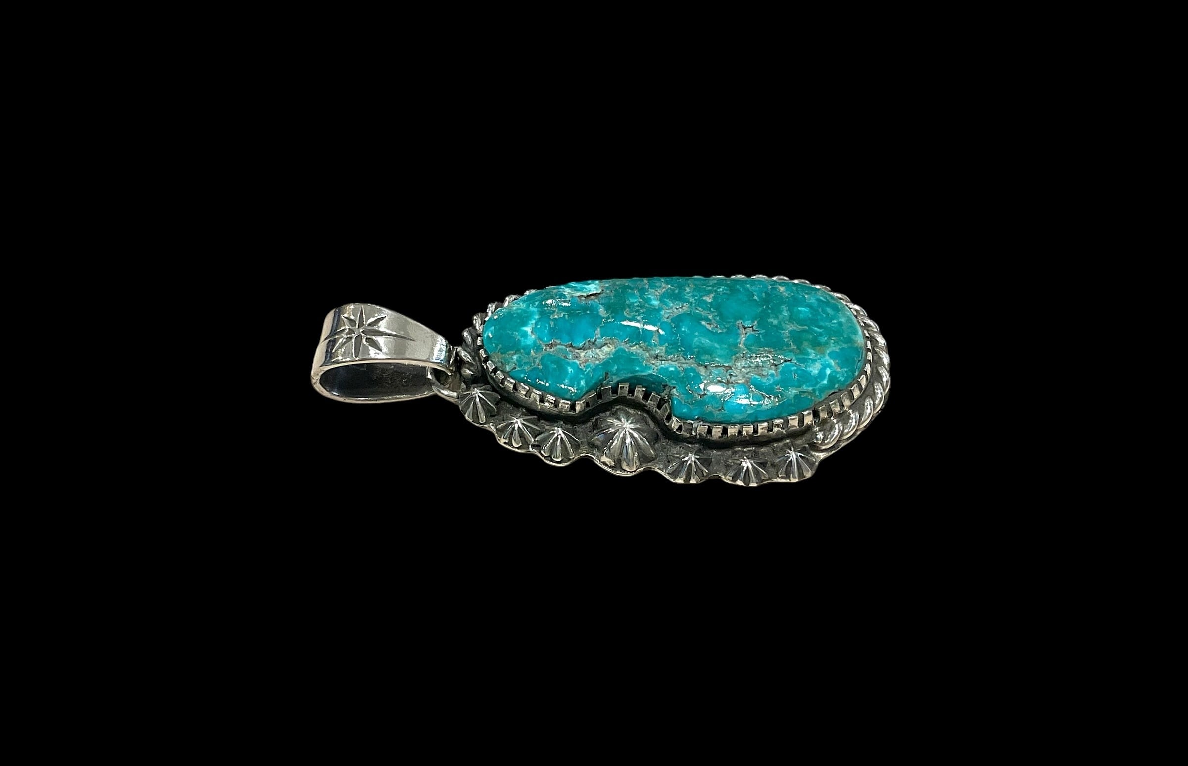 大胆な存在感を放つローンマウンテンターコイズのペンダントトップ。