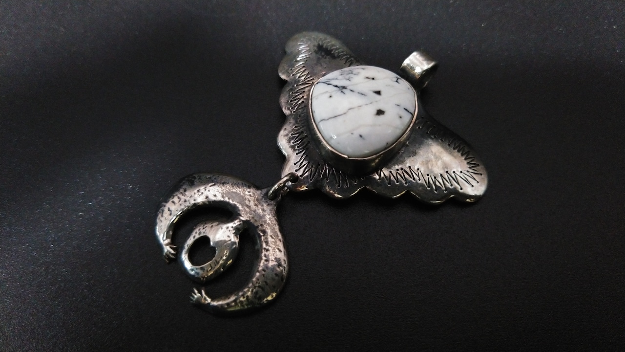 幻のターコイズと言われる、ホワイトバッファローターコイズを使用して作成したペンダントヘッドになります