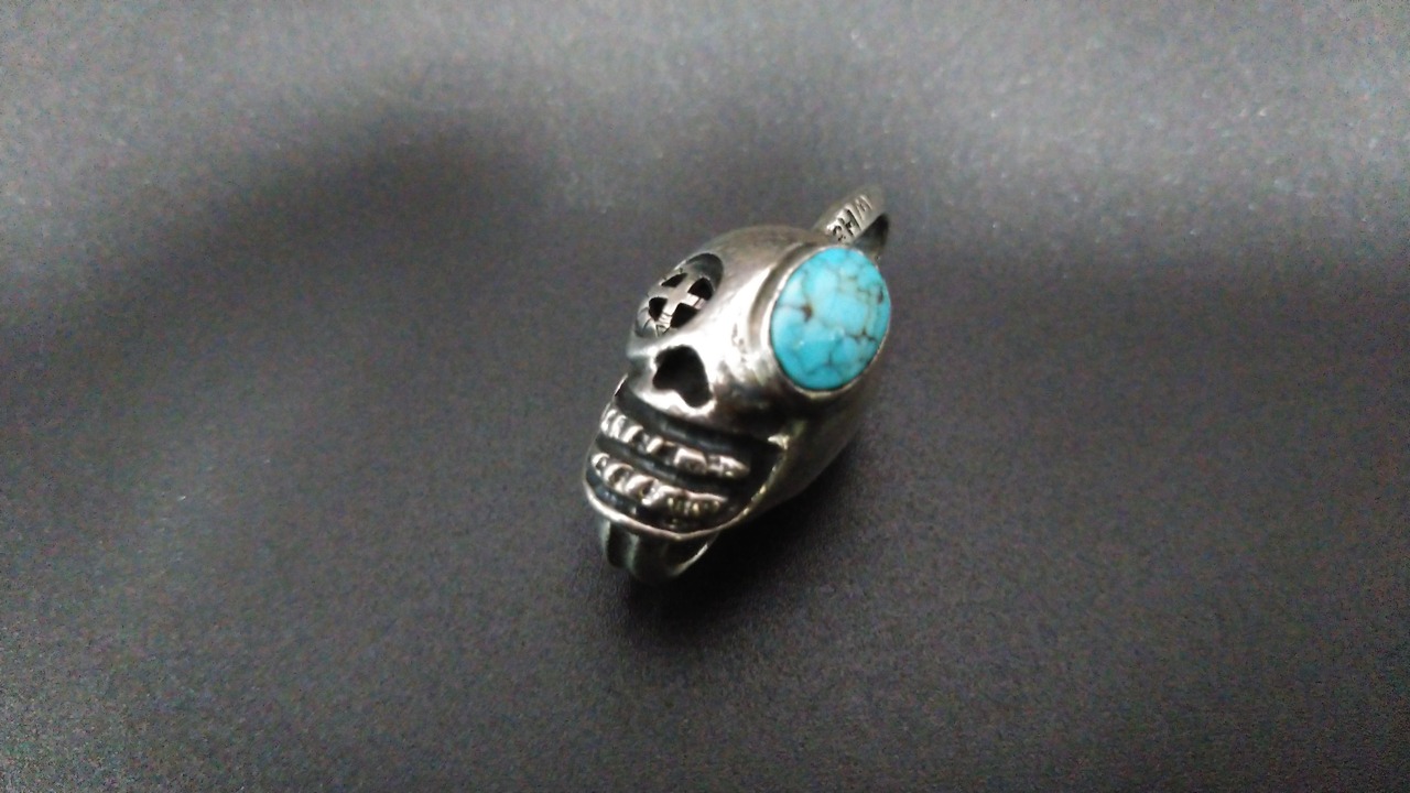 片目にはWHEEL WORKSのロゴマーク、もう片方の目にはナンバー8ターコイズを埋め込んでおり、小さいながらもインパクトあるペンダントヘッドです