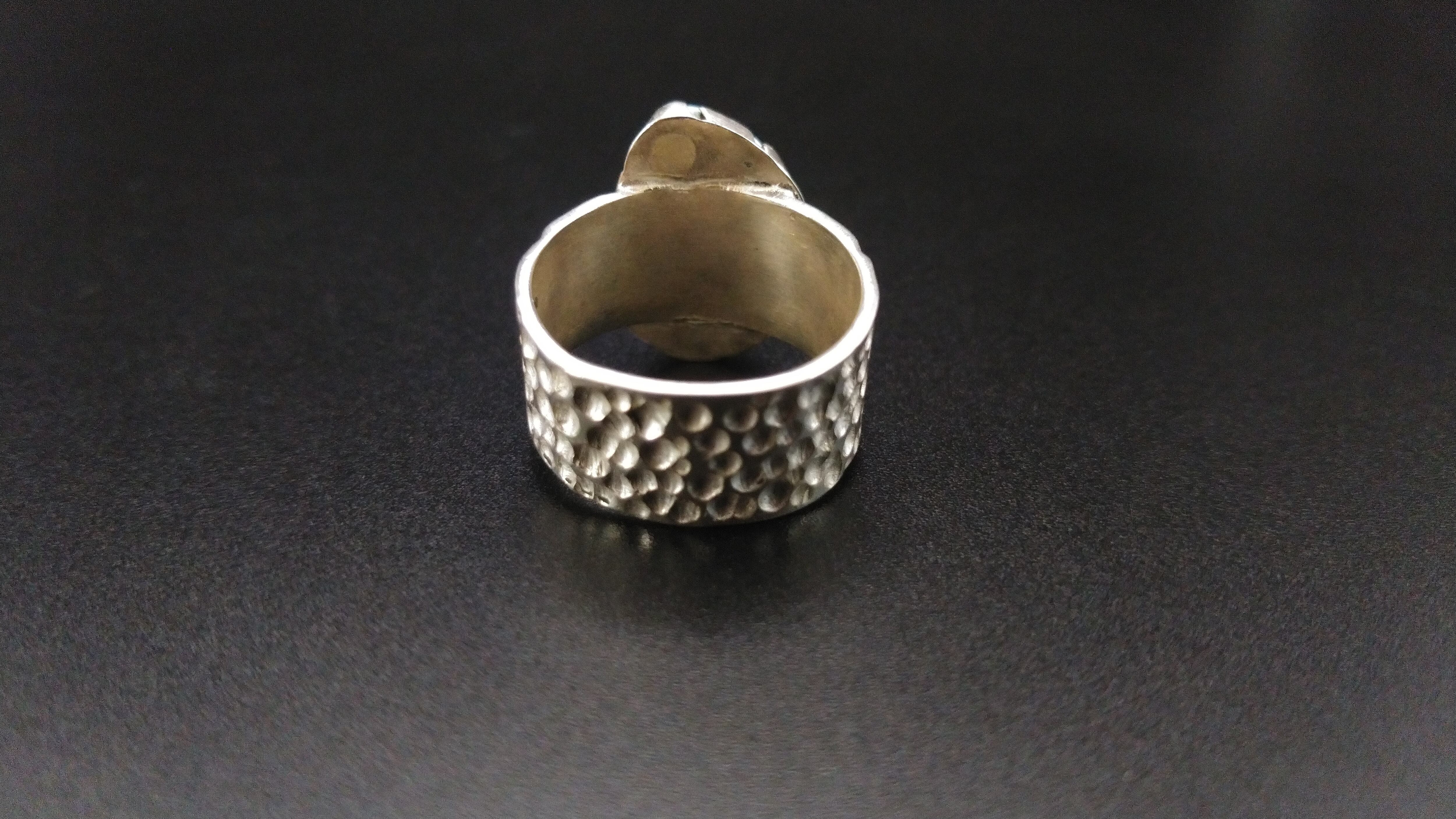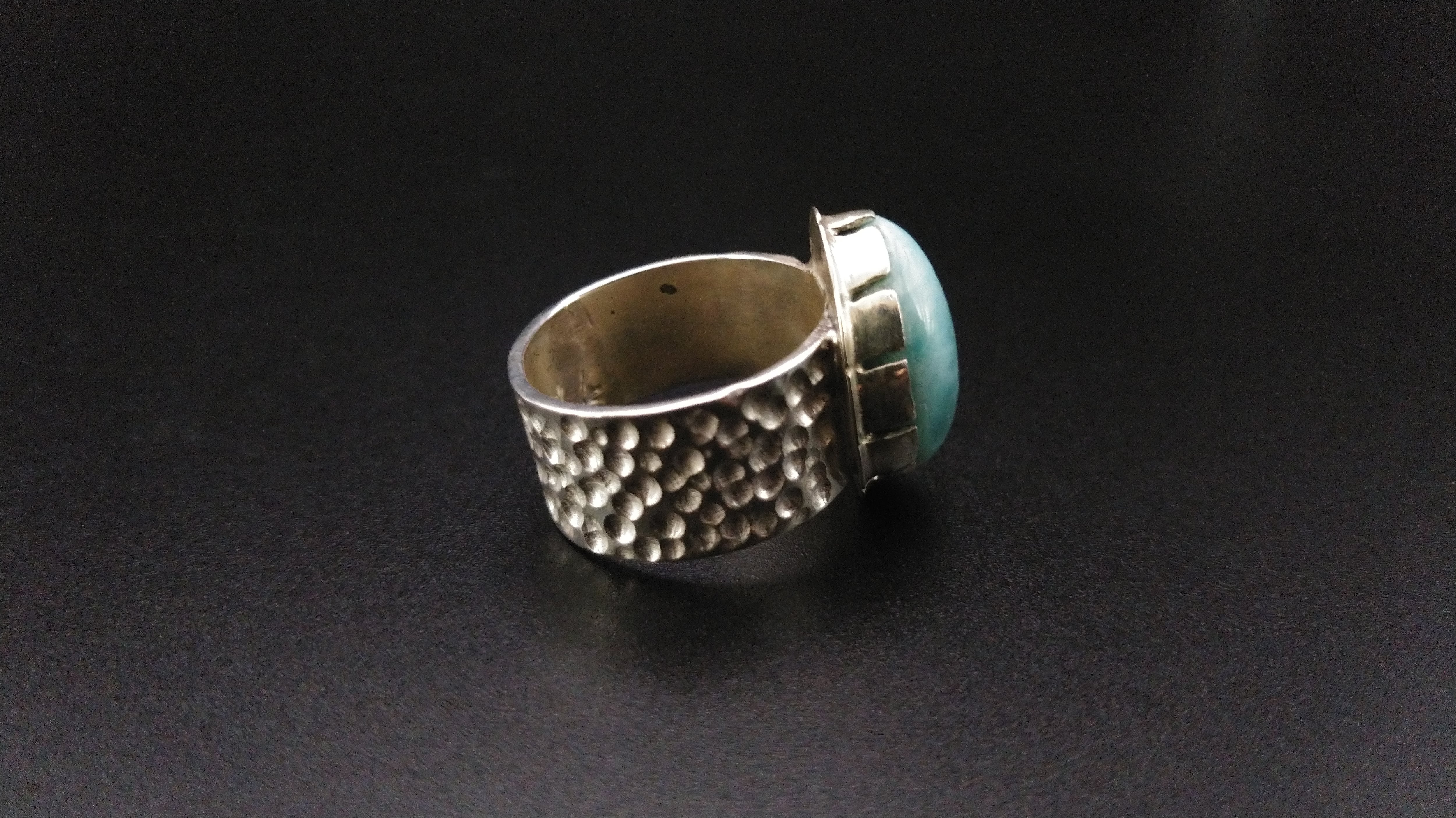 中央にはラリマーターコイズを埋め込み、存在感あるリングに仕上げています