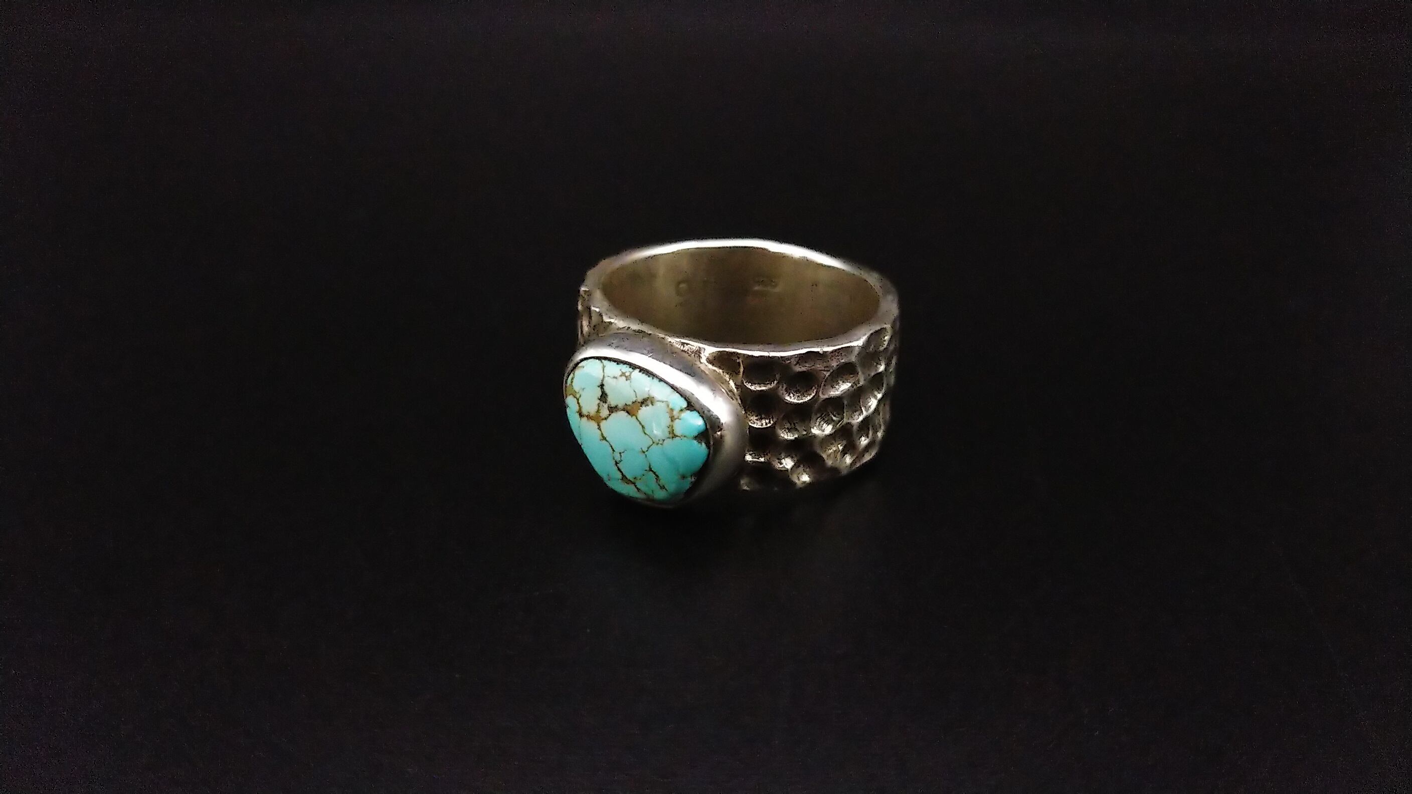 中央にナンバー8ターコイズを埋め込み、存在感あるリングに仕上げています