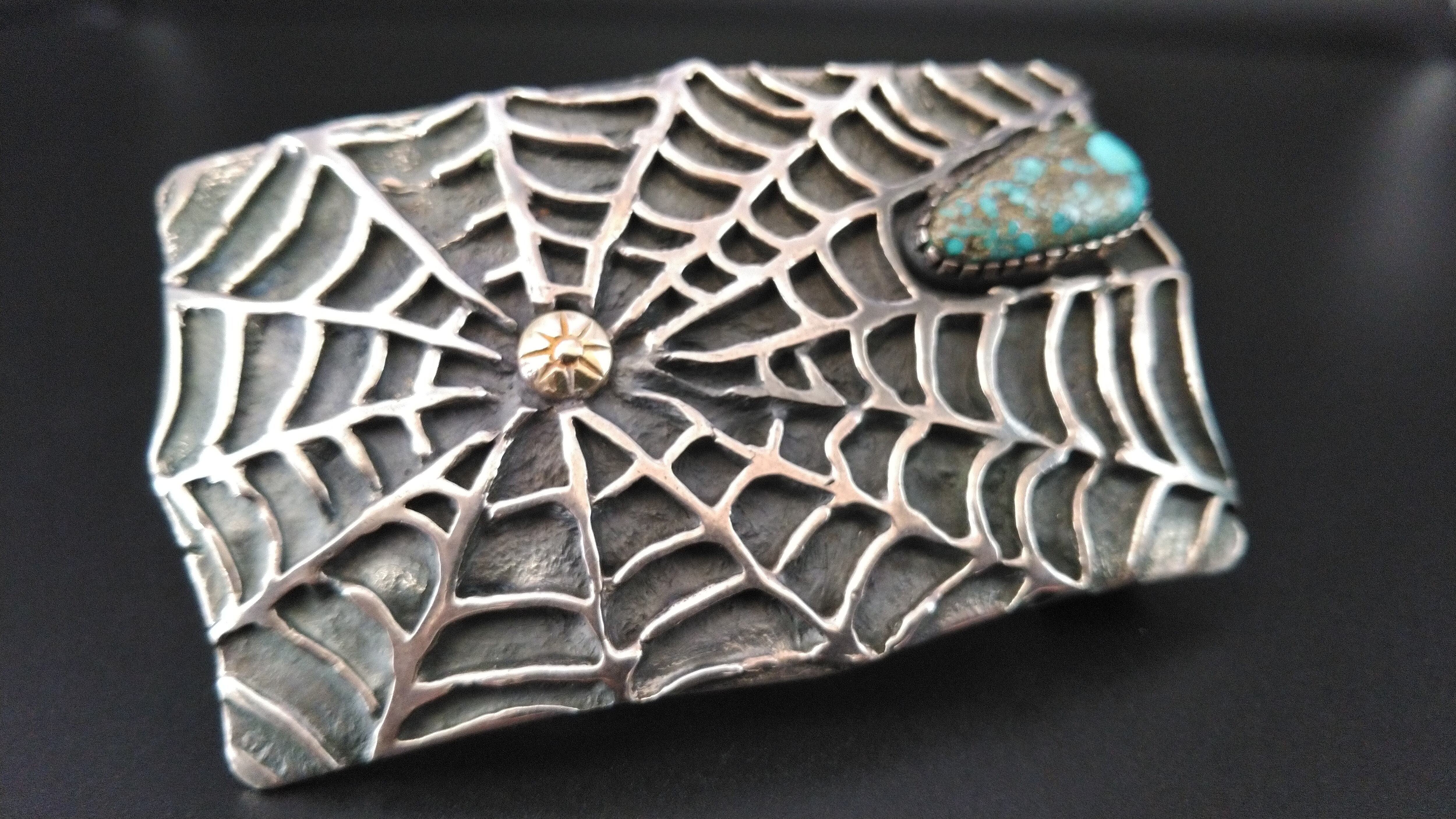 スパイダーテクスチャーバックル(ローンマウンテンターコイズ×18k)【AO-011】