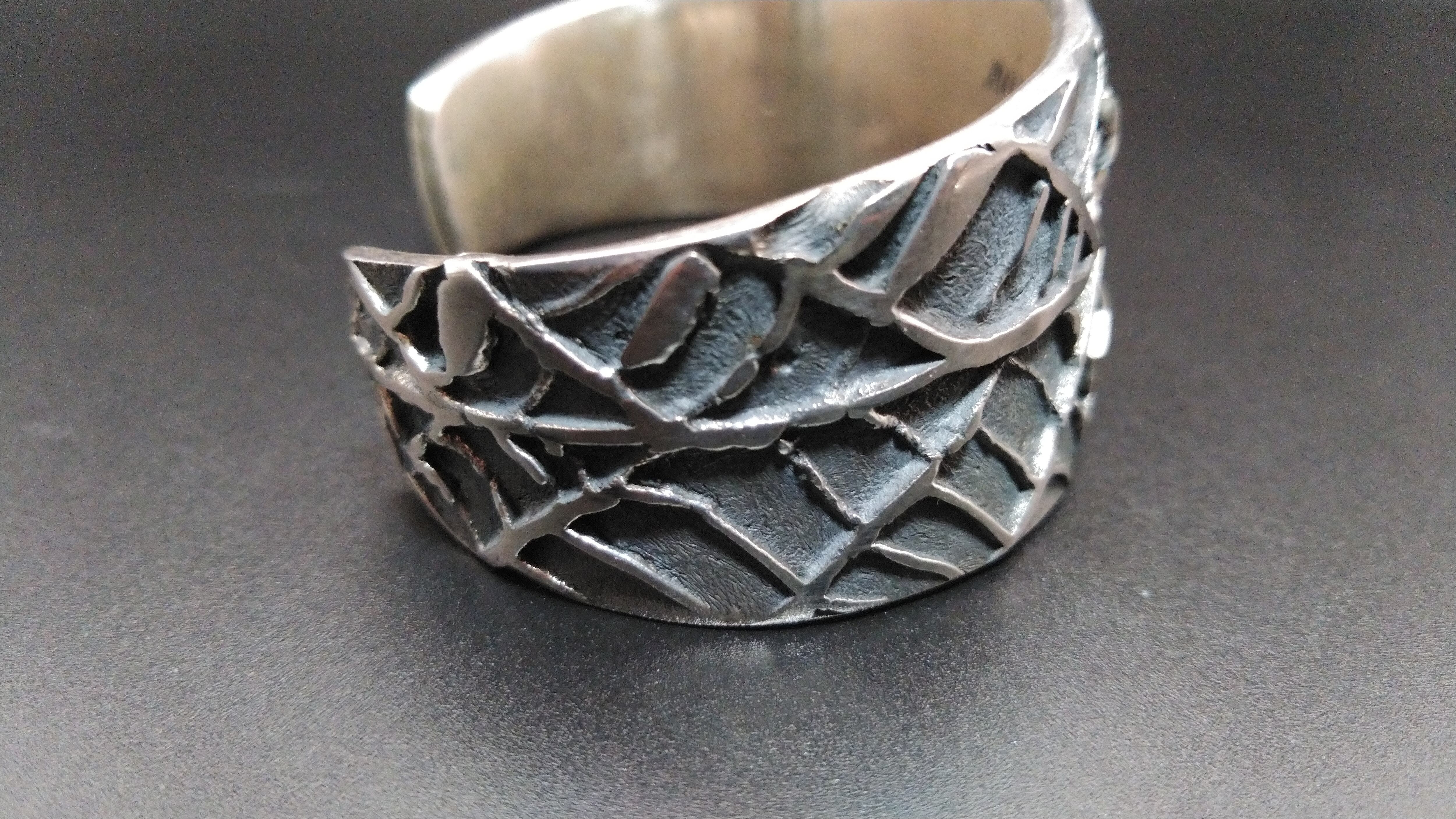 スパイダーウェブ(クモの巣の造形)をモチーフに作成した大型のバングルになります
