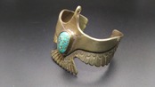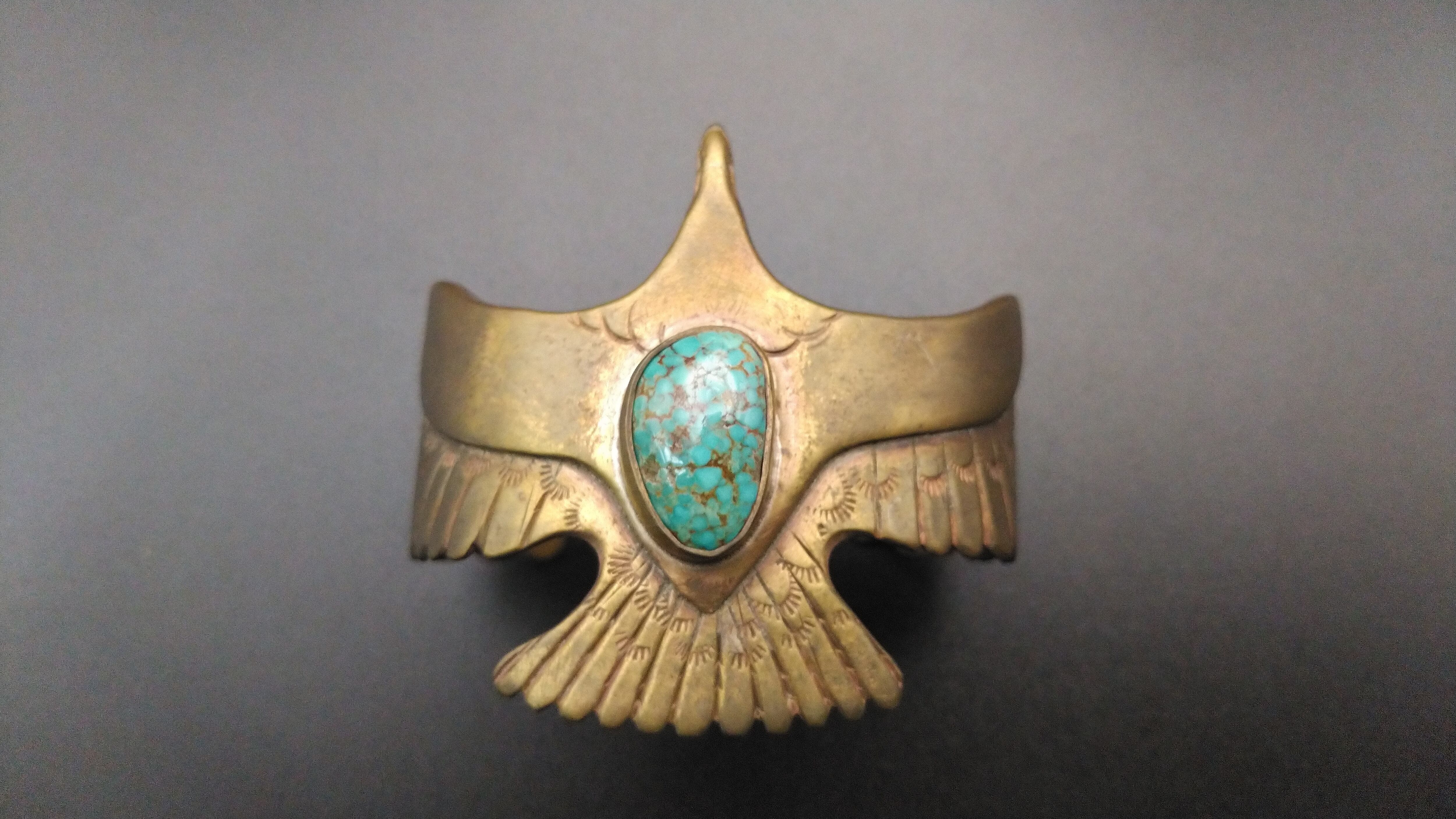 上部には大粒のナンバー8ターコイズを埋め込み、非常に存在感があるインパクトのある作品に仕上げました