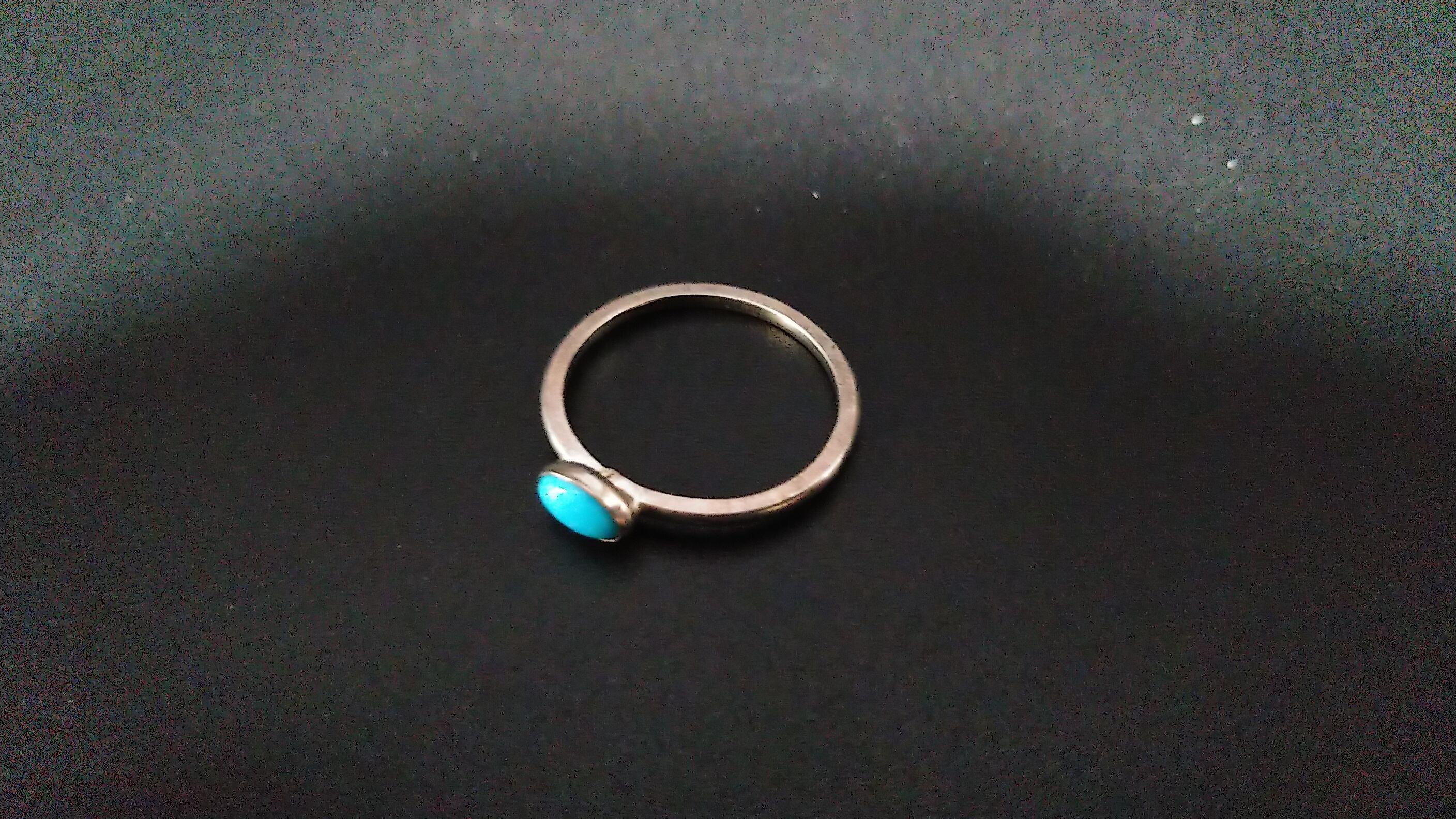 上部にはスリーピングビューティーターコイズをセットし、どの様な服装にも合うリングに仕上げました