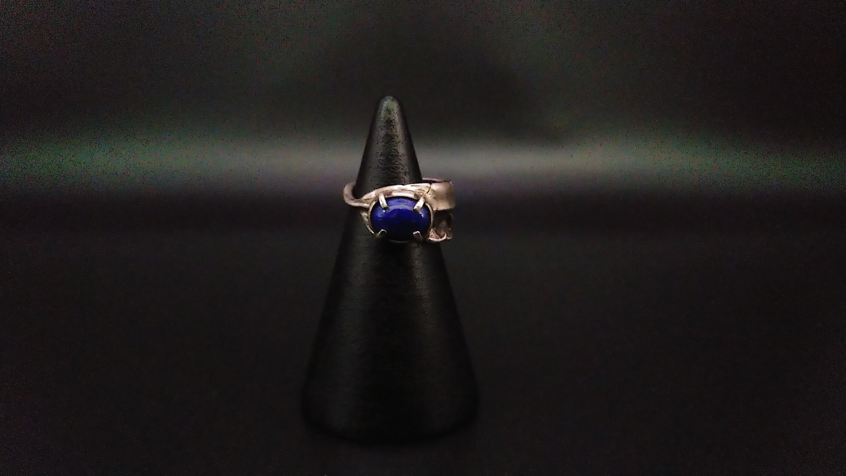 上部にはラピスラズリをセットし、小さいながらも存在感あるリングに仕上げています