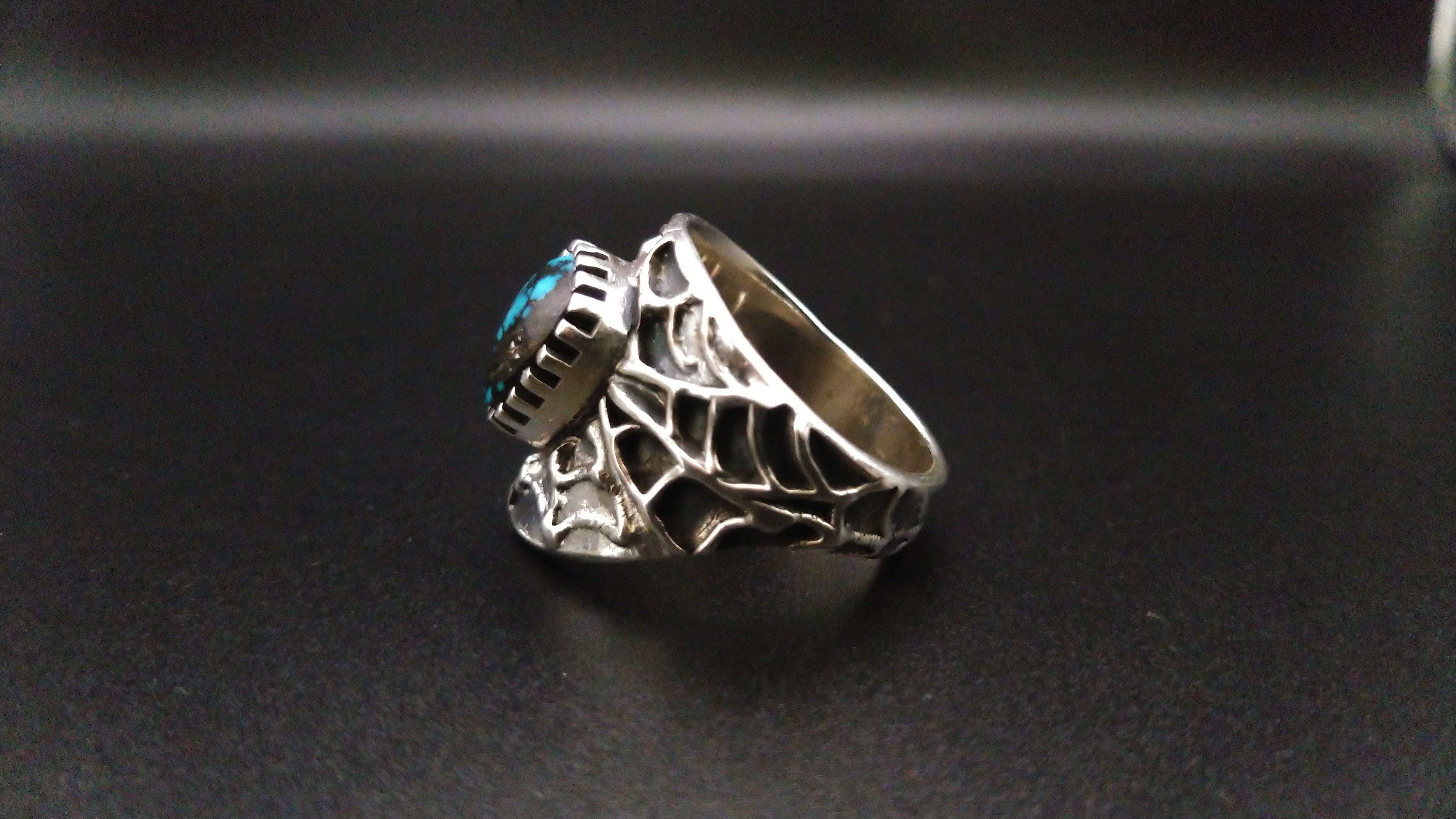 中央部にはクラウドマウンテンターコイズをセットしており、非常にワイルドかつ、インパクトのある作品となっています