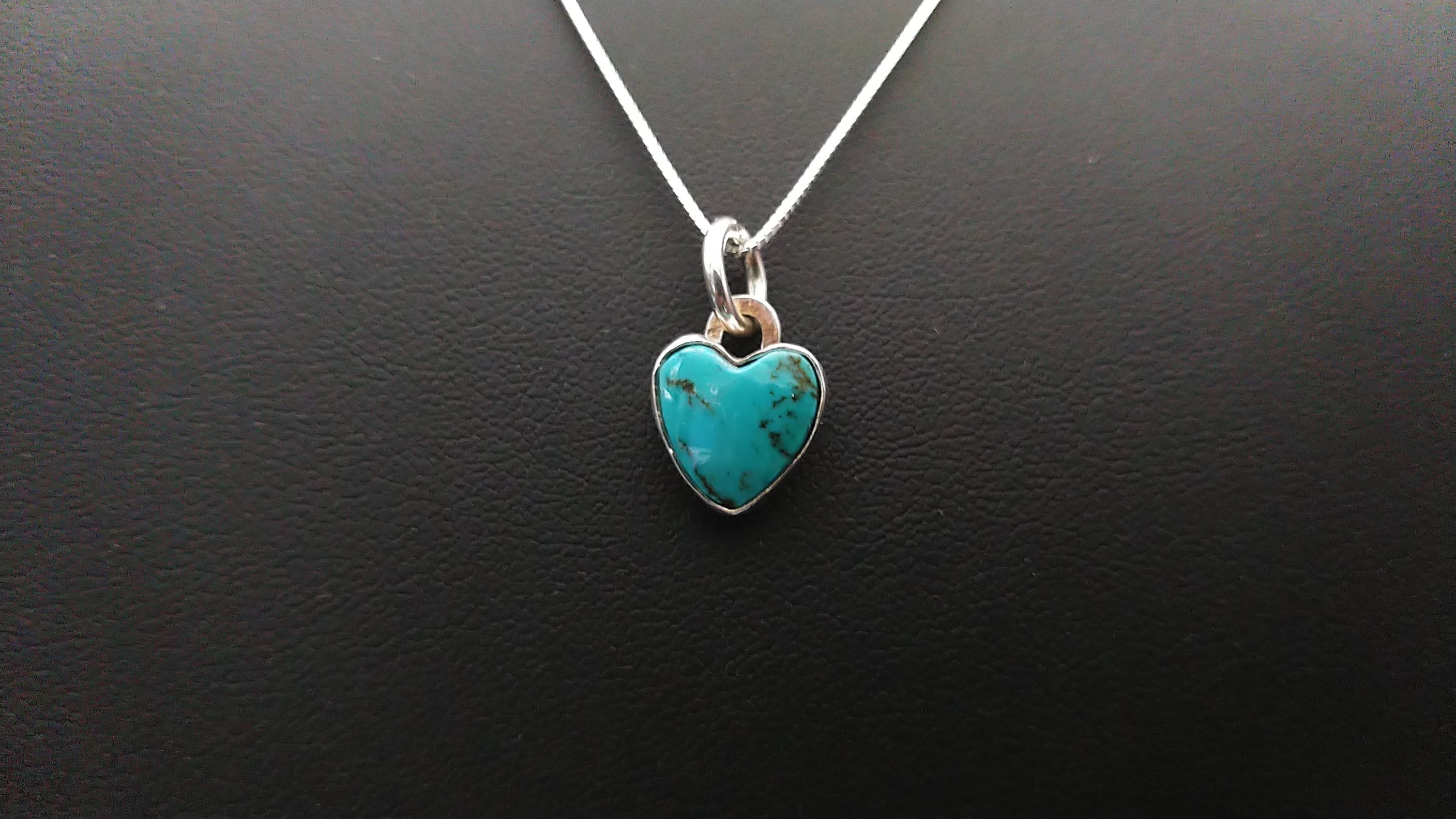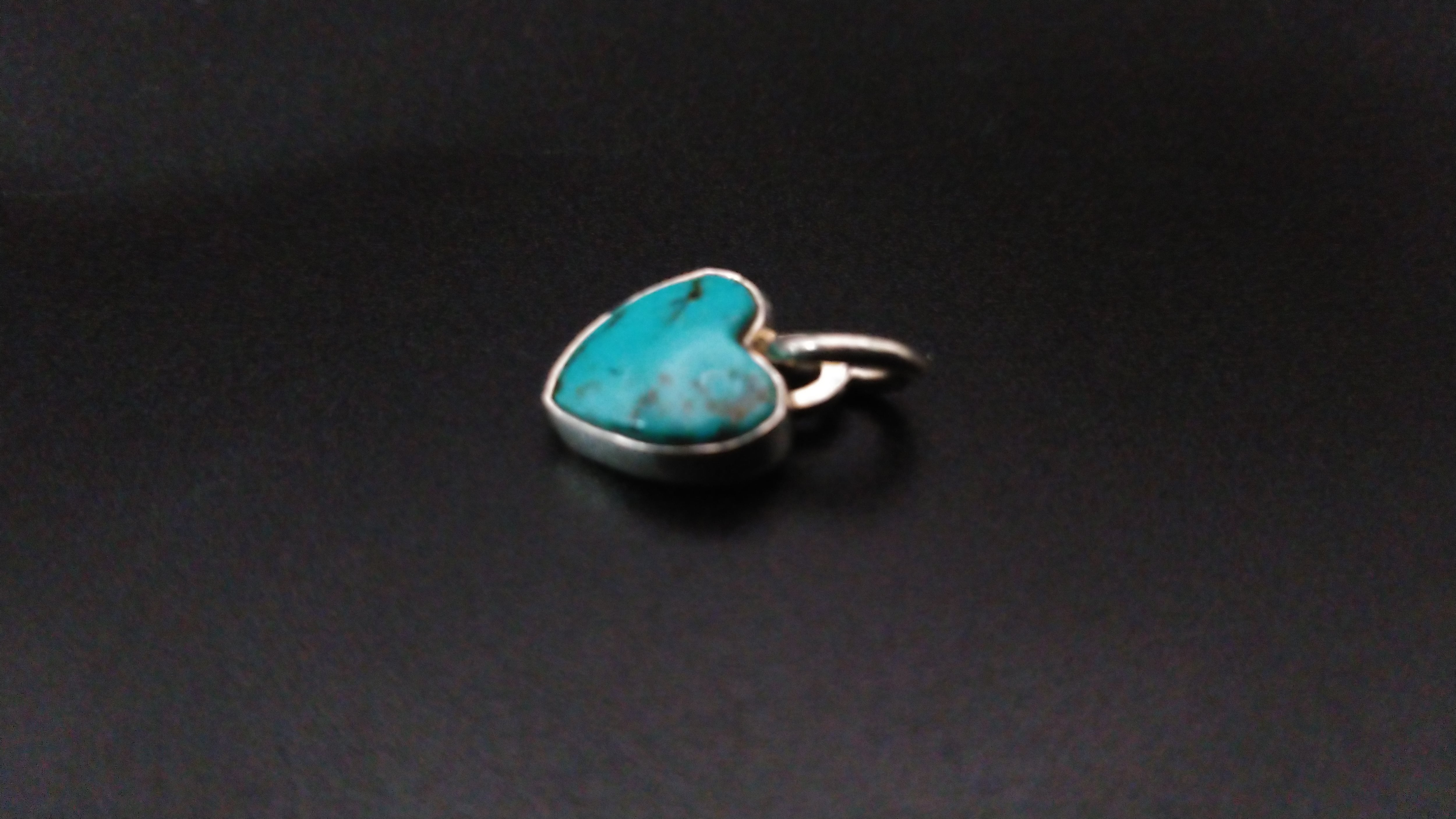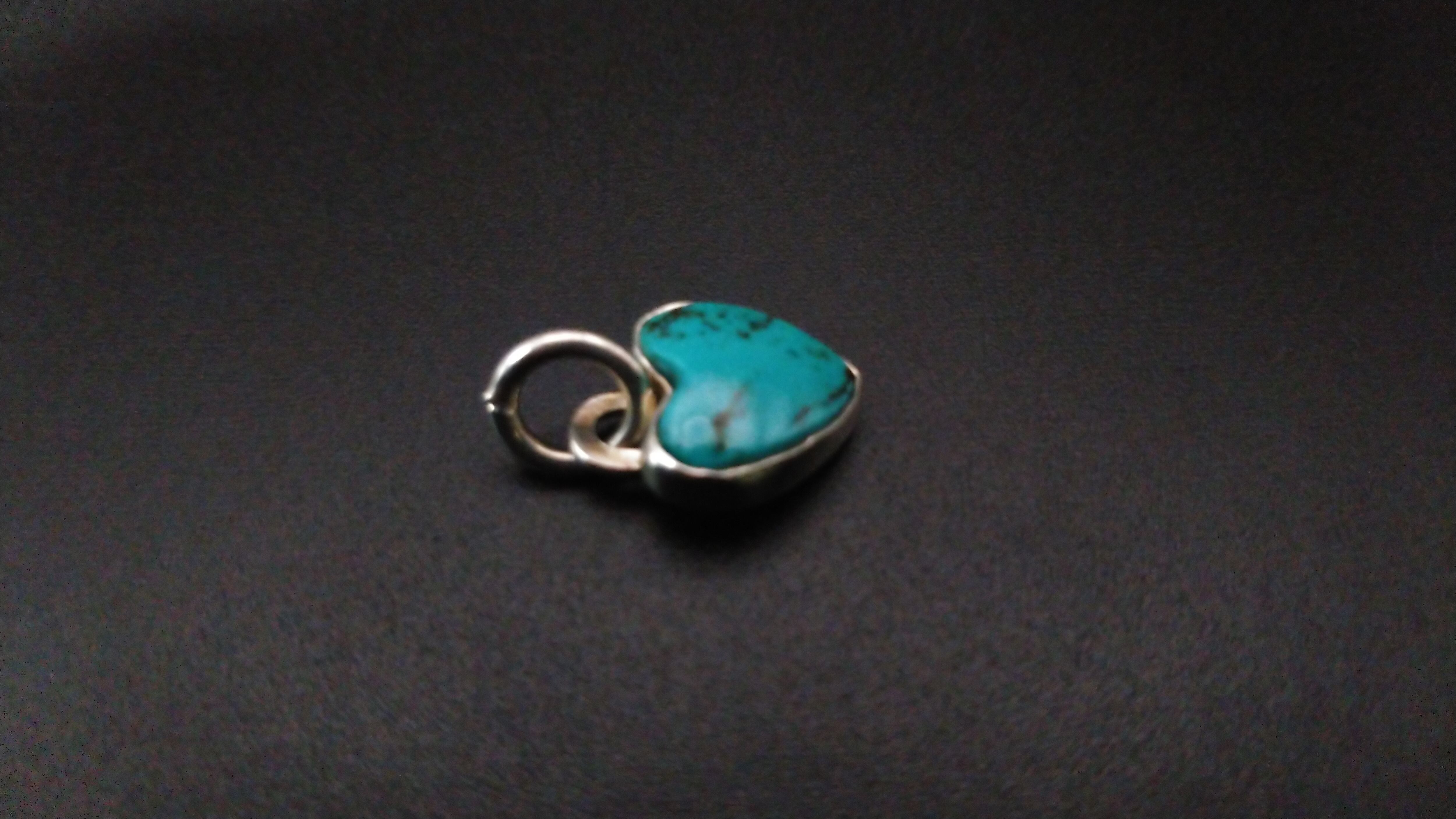 ナンバー8ターコイズを使用して作成した小さめのハート型ペンダントヘッドになります