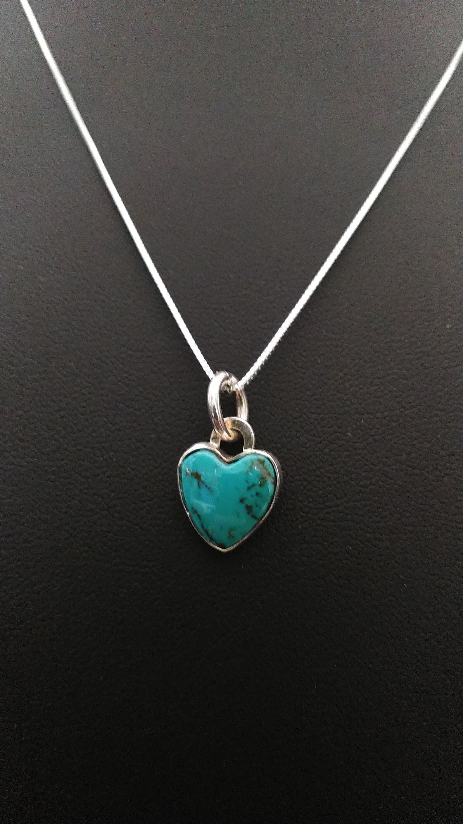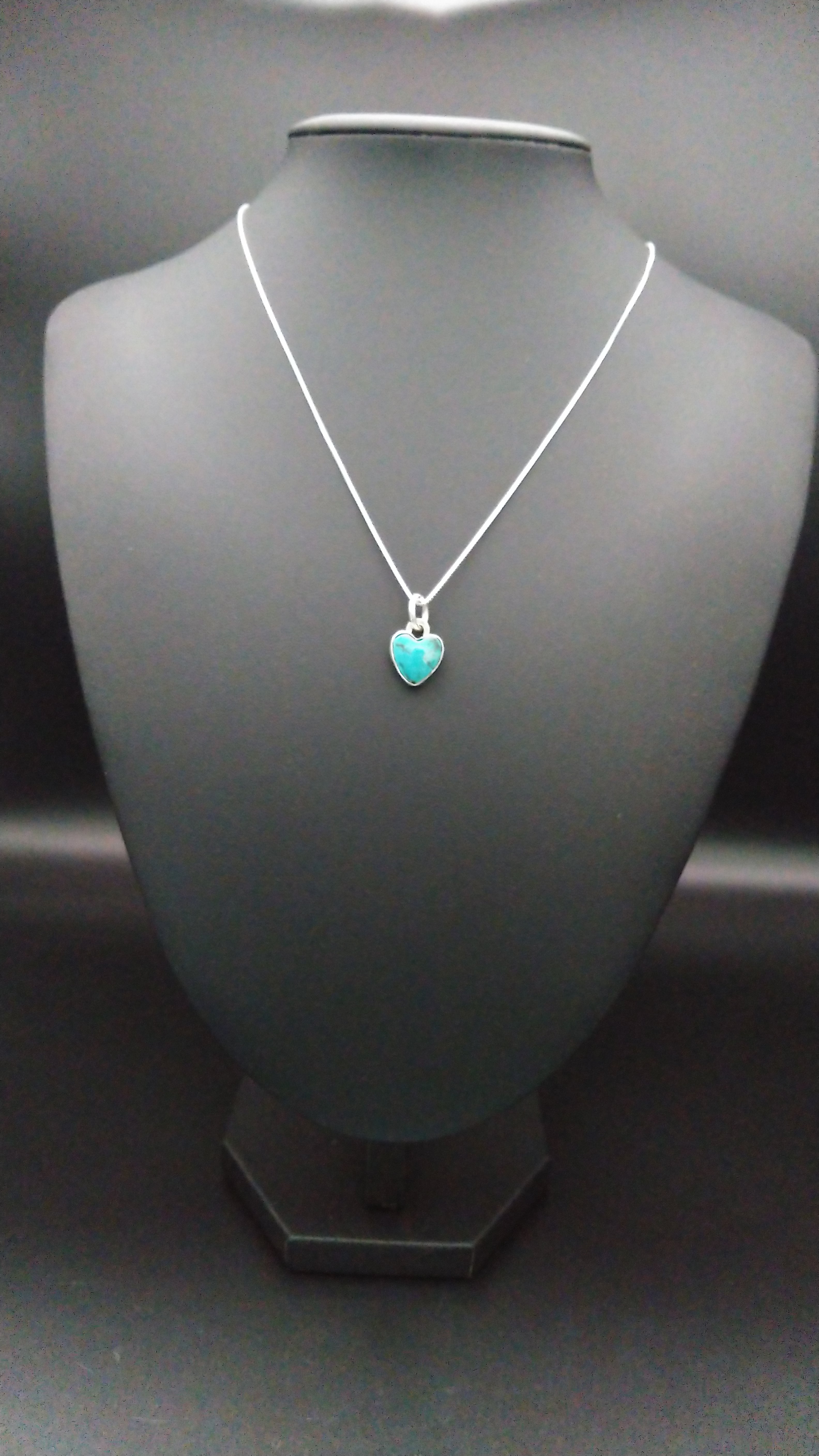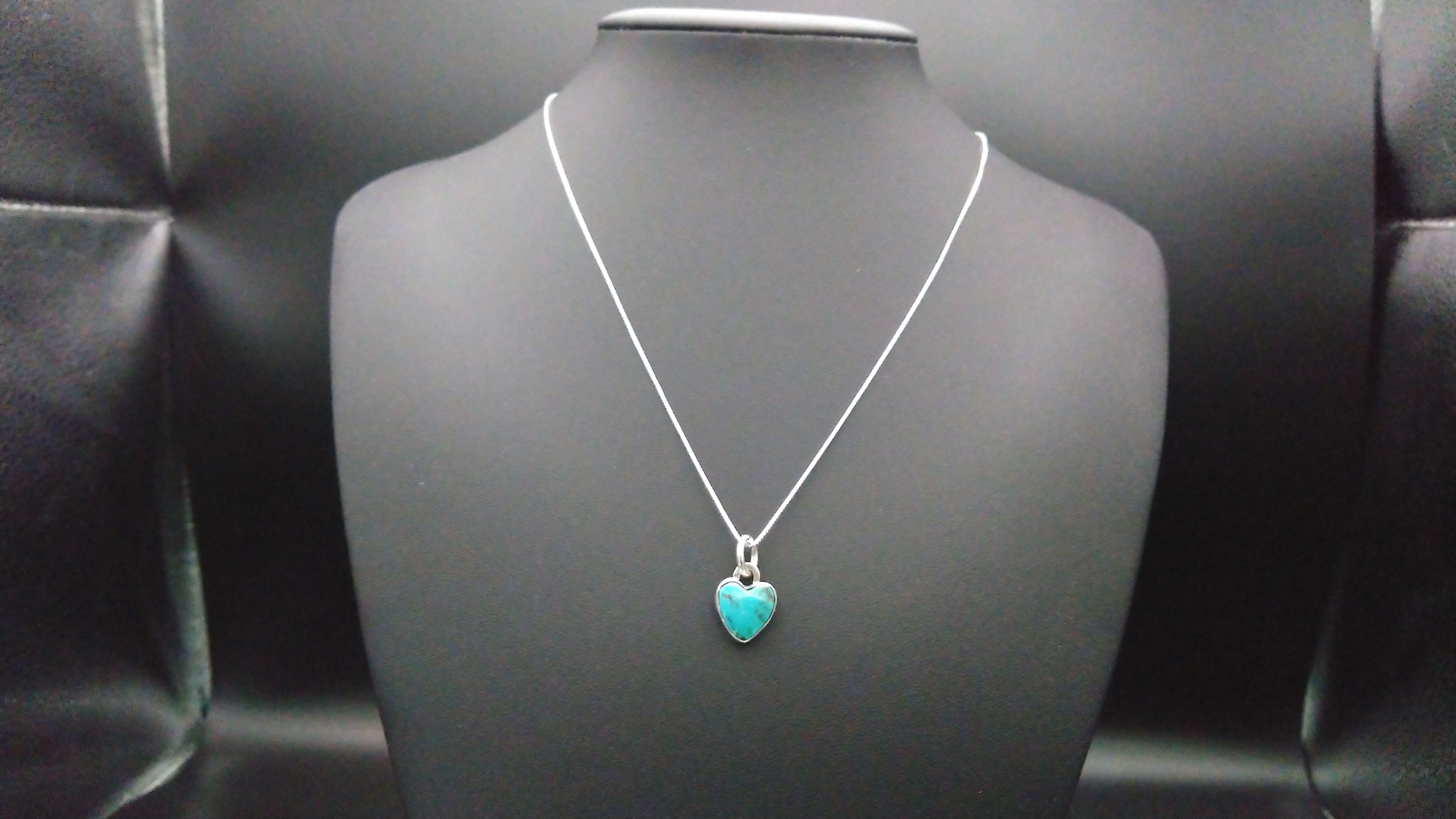 ナンバー8ターコイズを使用して作成した小さめのハート型ペンダントヘッドになります