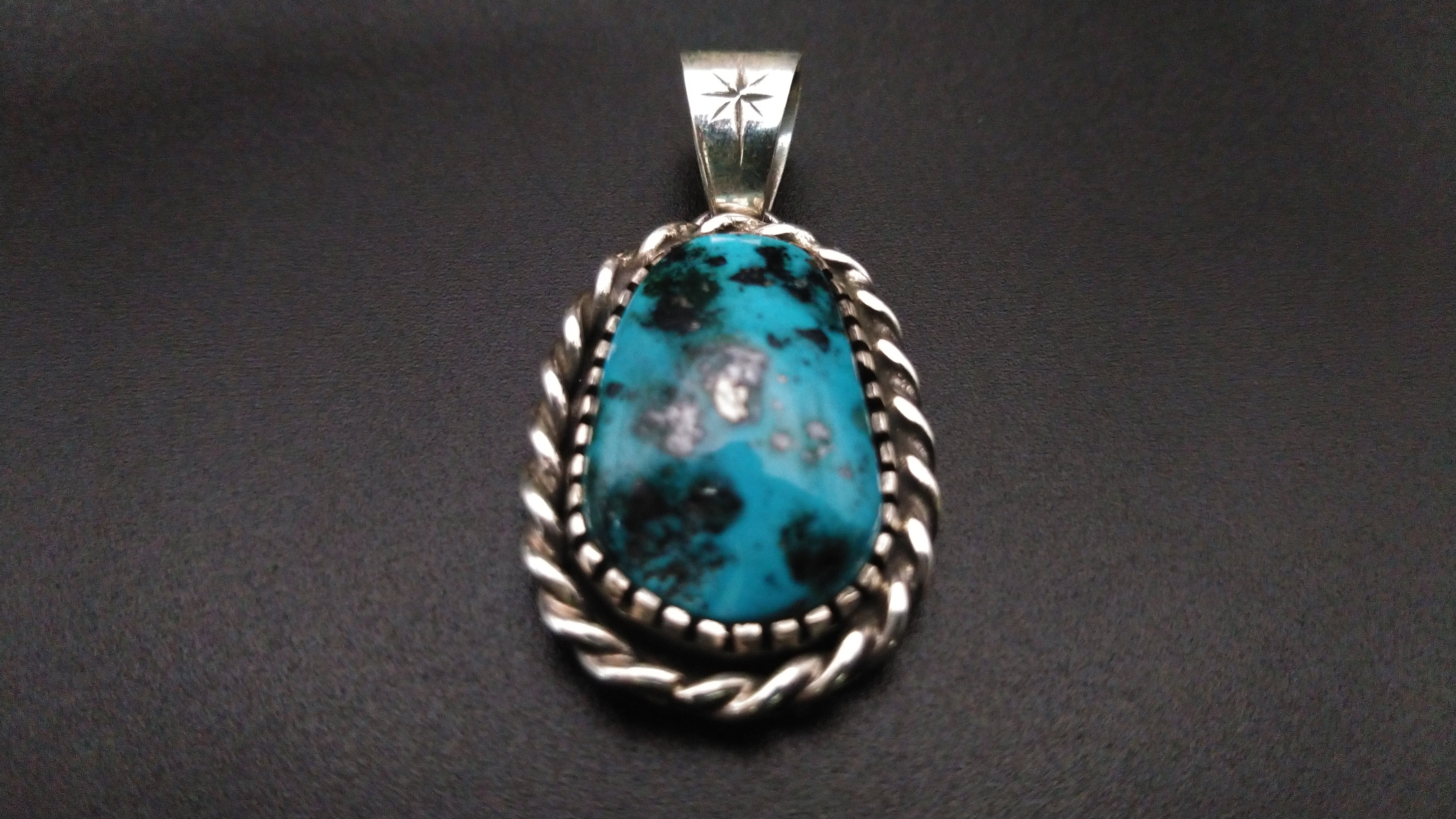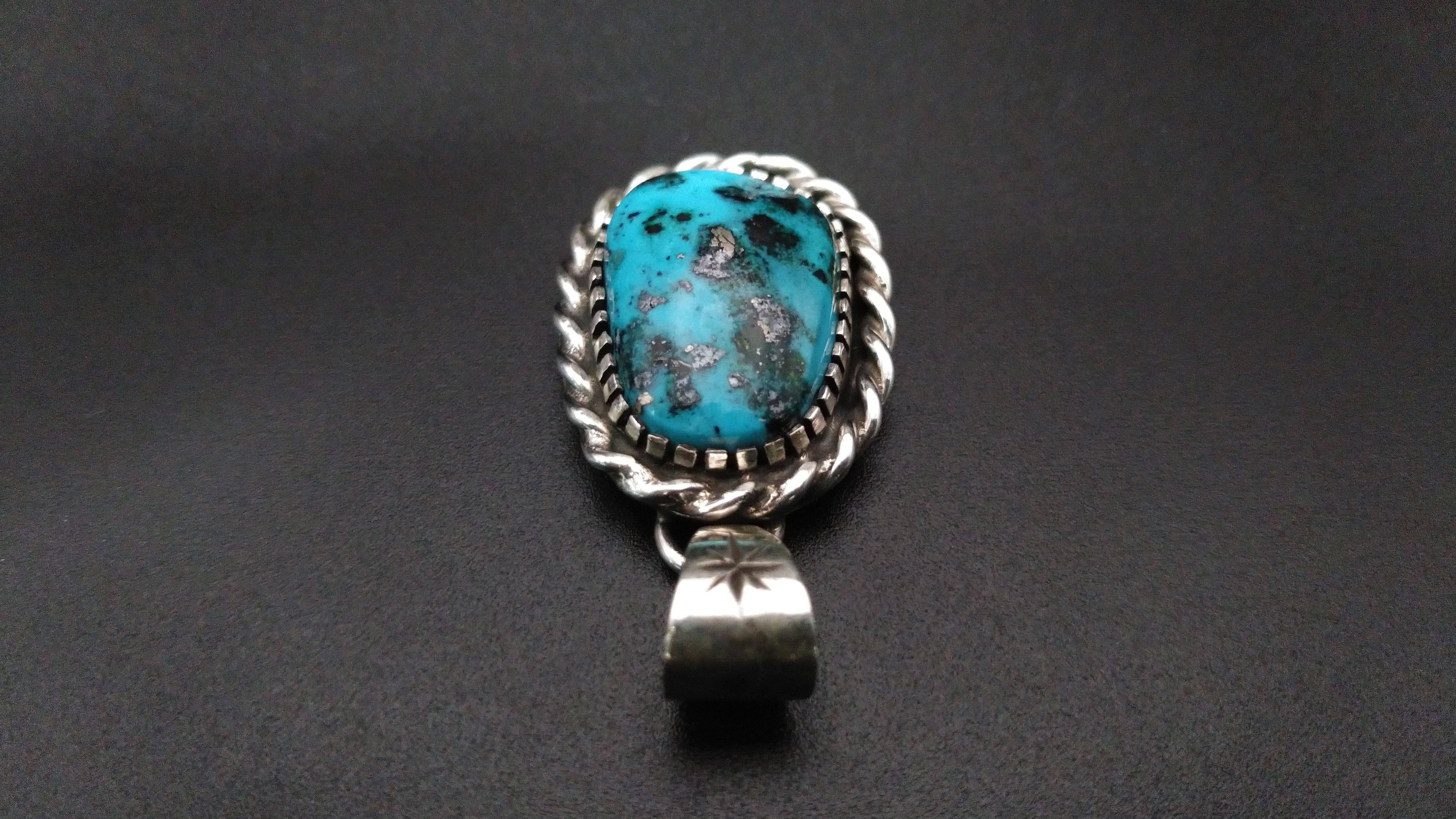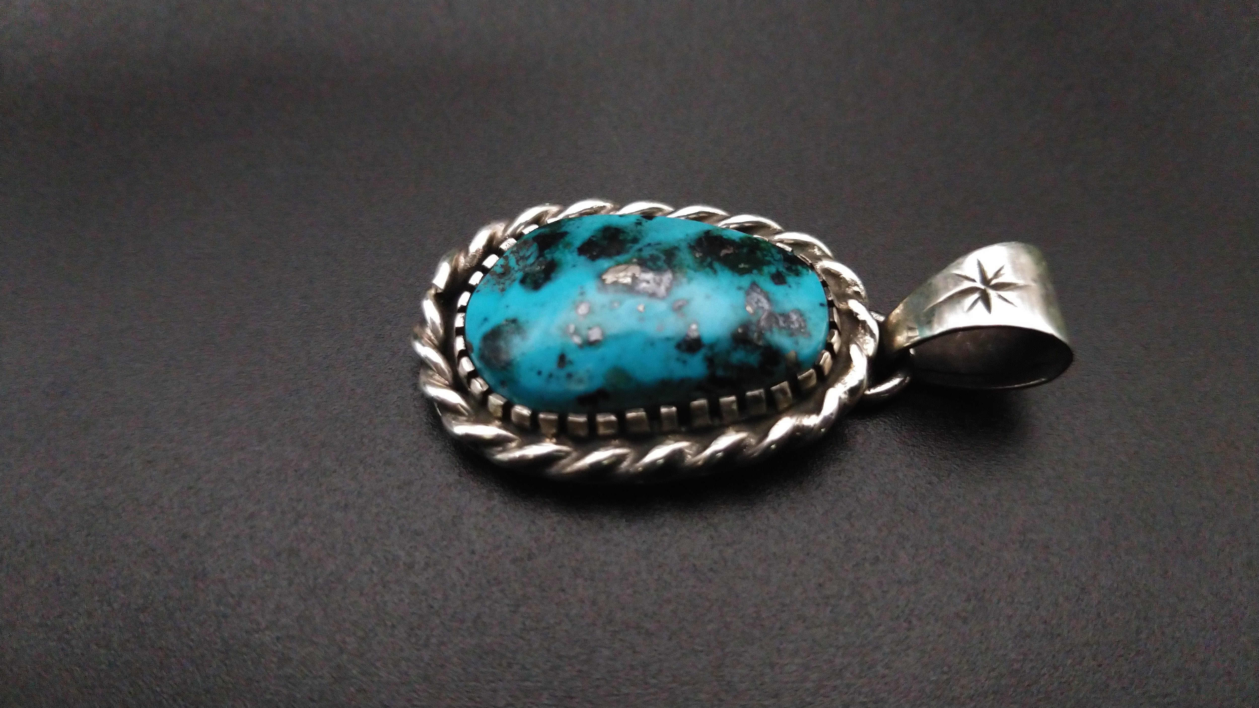 ハイグレードターコイズ特有の独特のまだら模様がとても美しい作品となっています