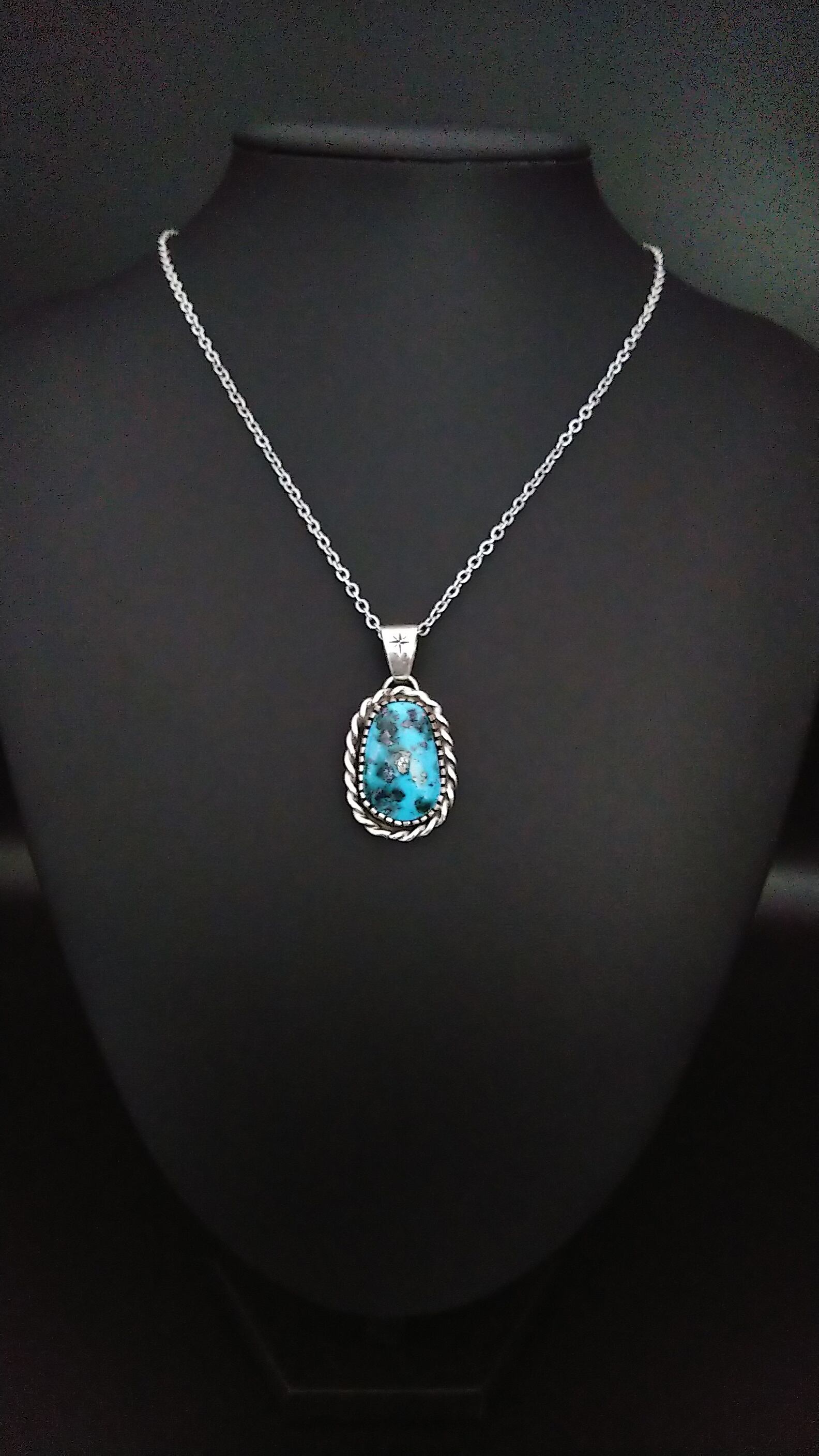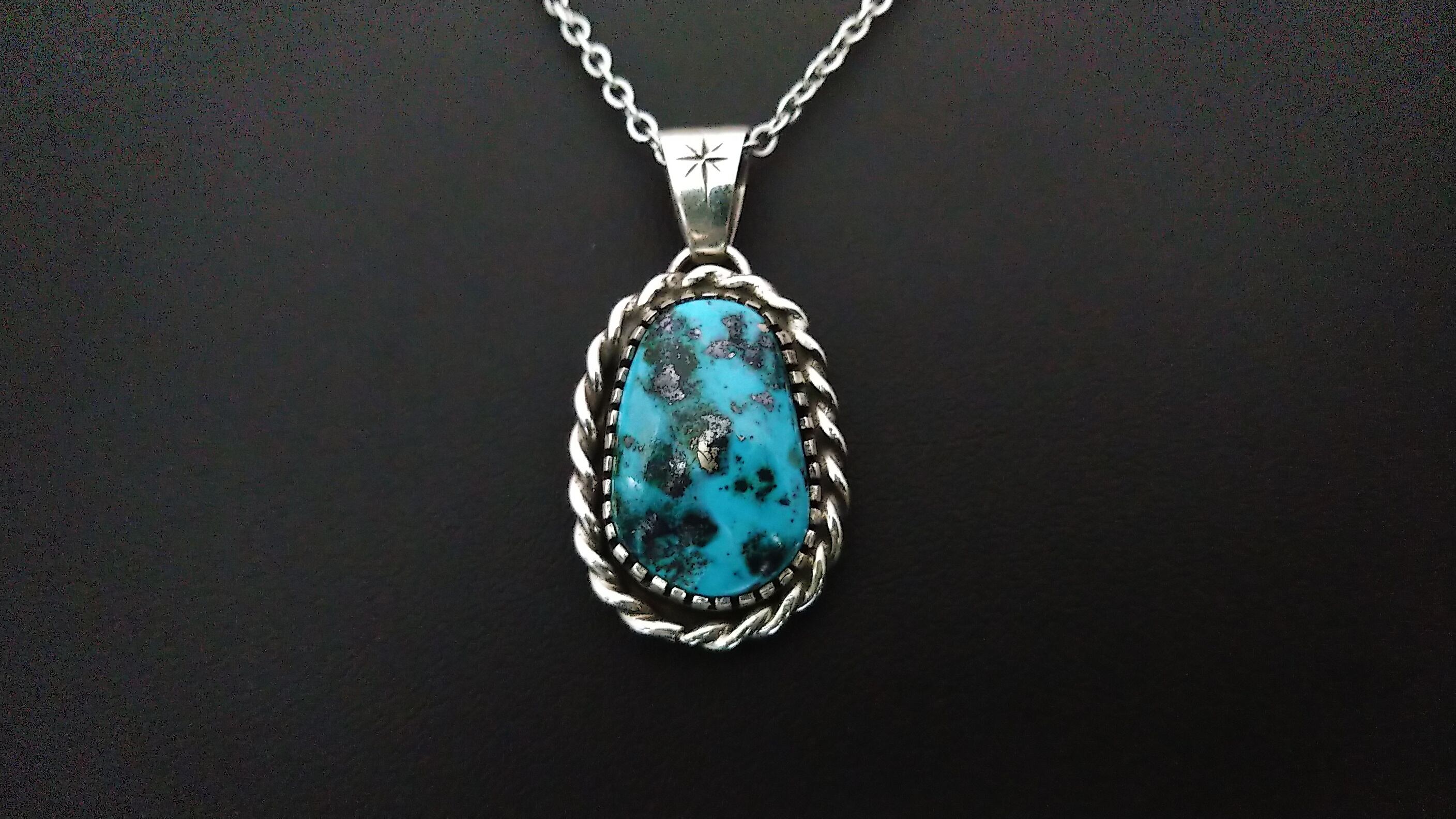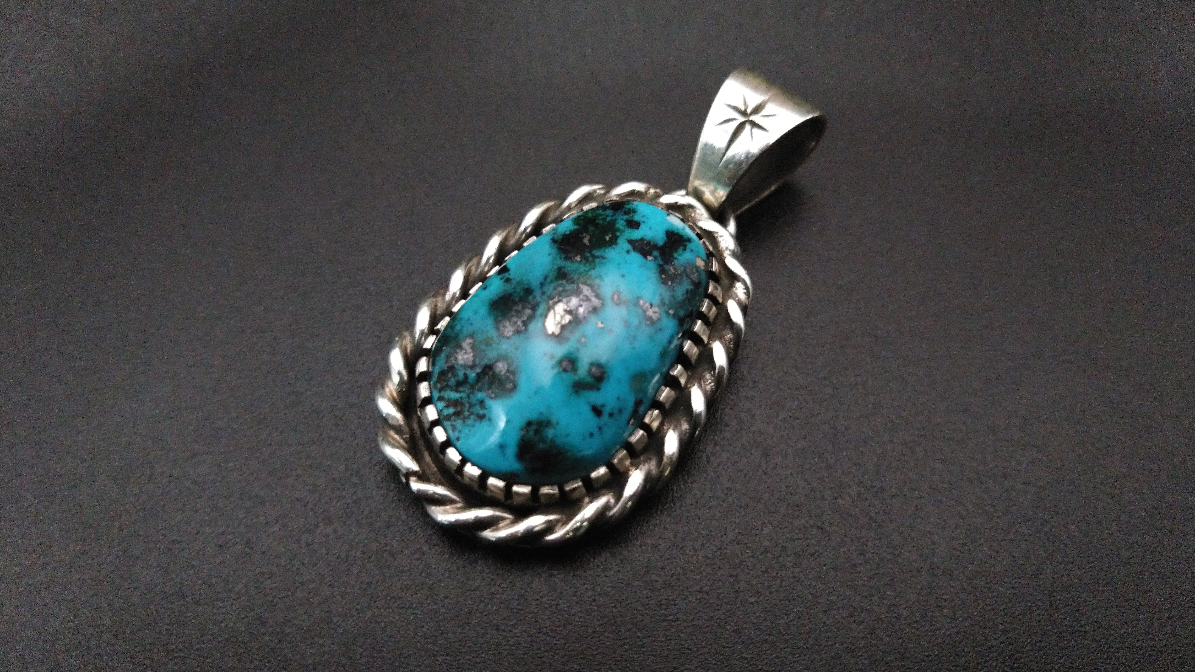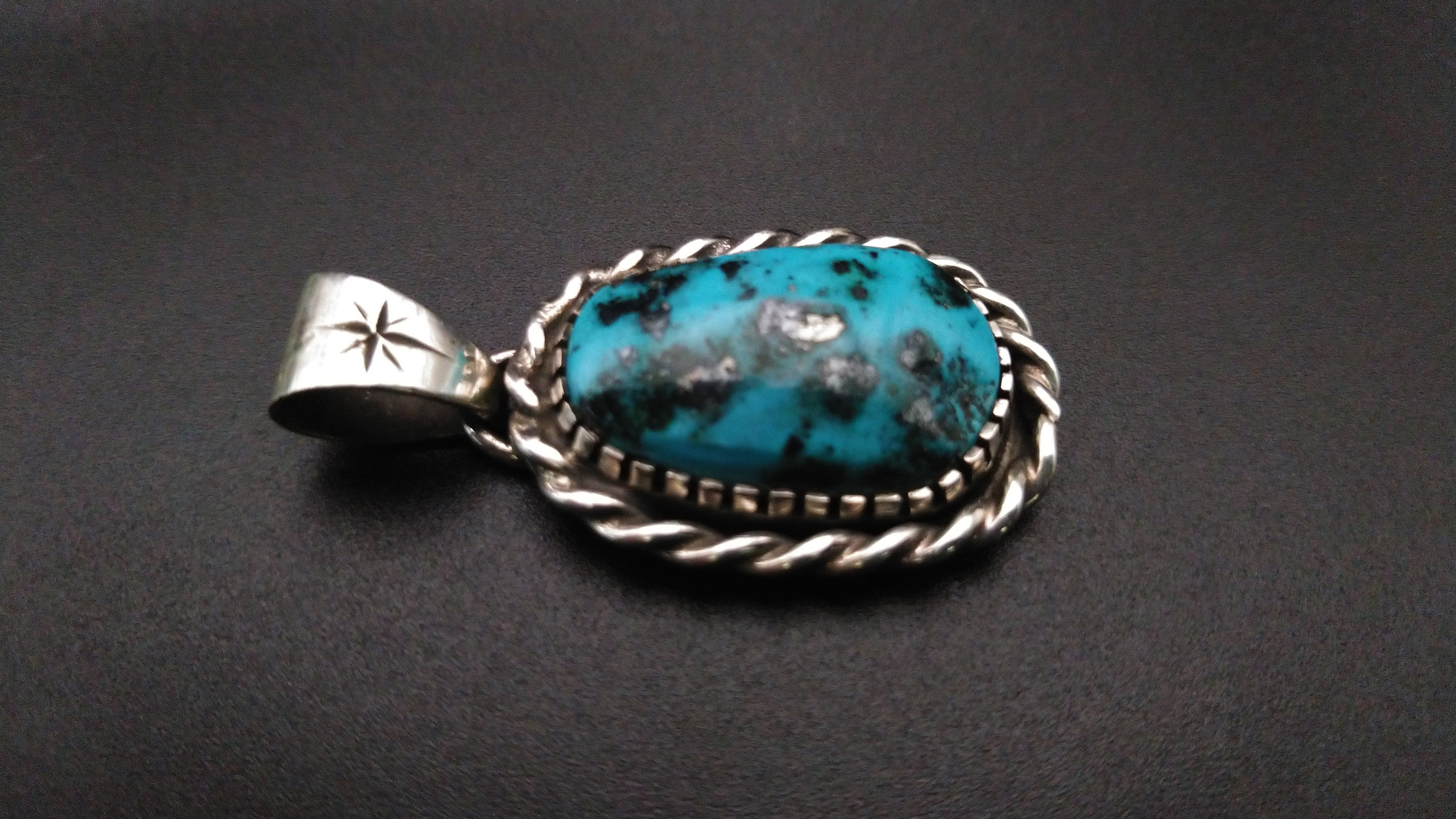 ハイグレードターコイズ特有の独特のまだら模様がとても美しい作品となっています