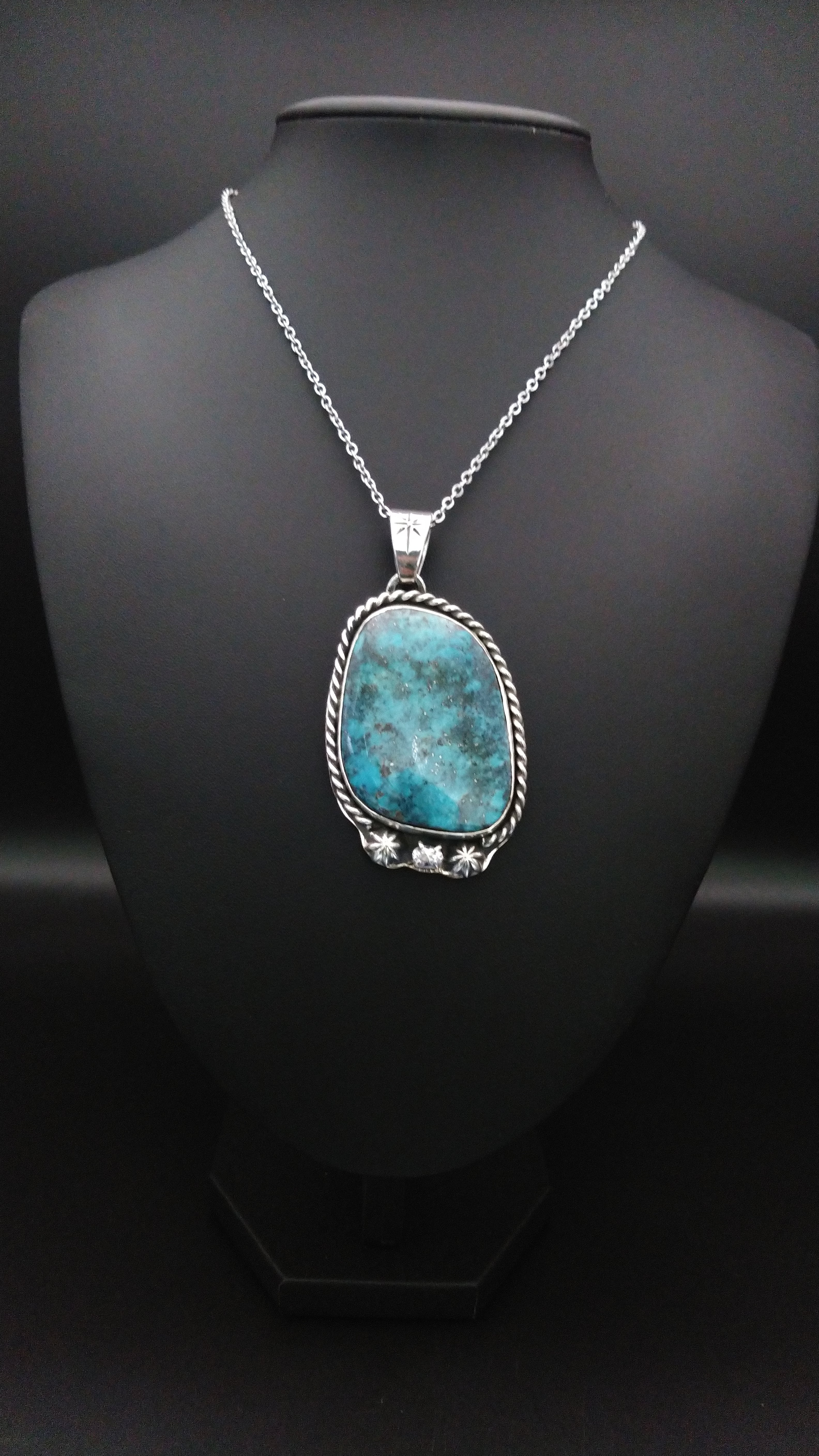 大粒のブルーダイアモンドを使用して作成した特大のペンダントヘッドになります