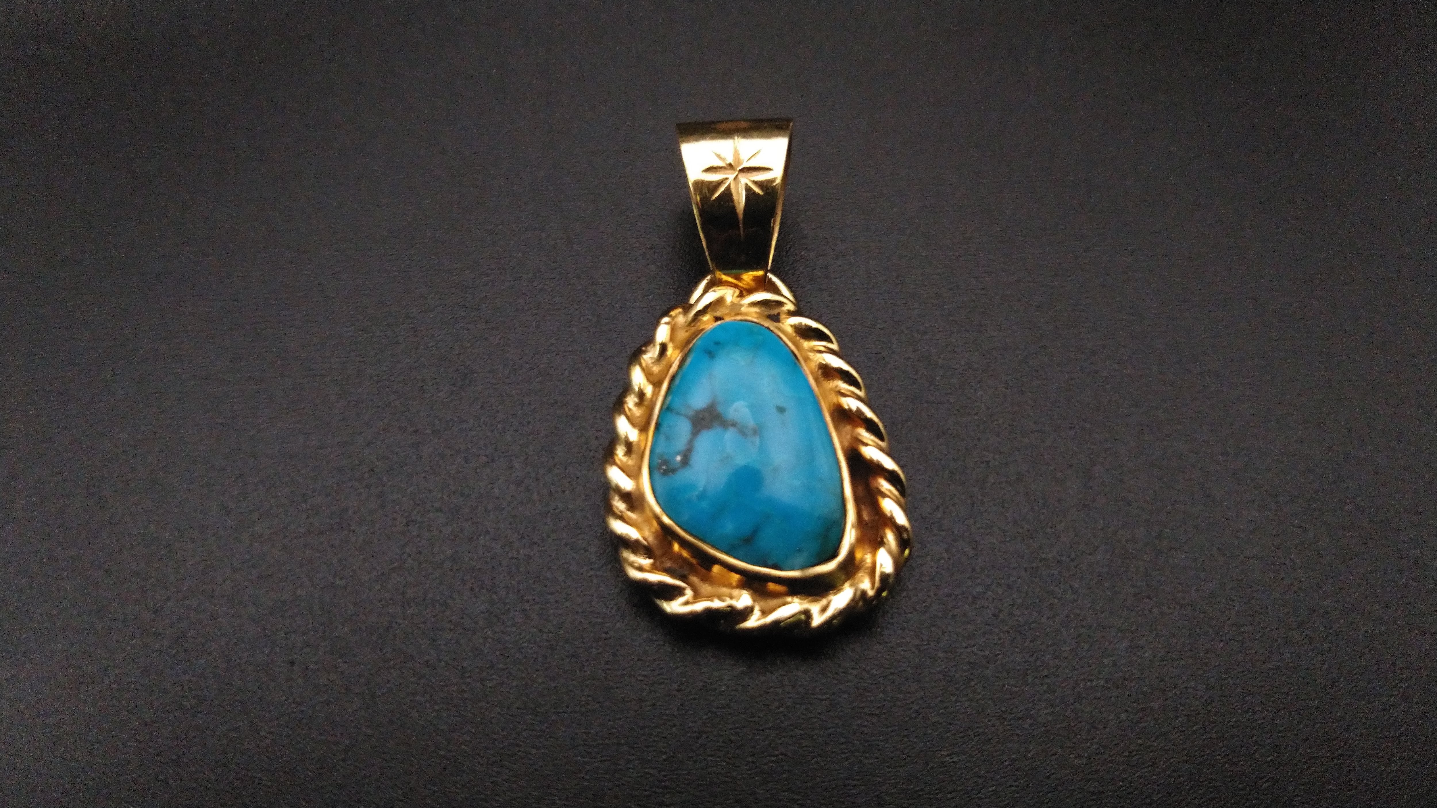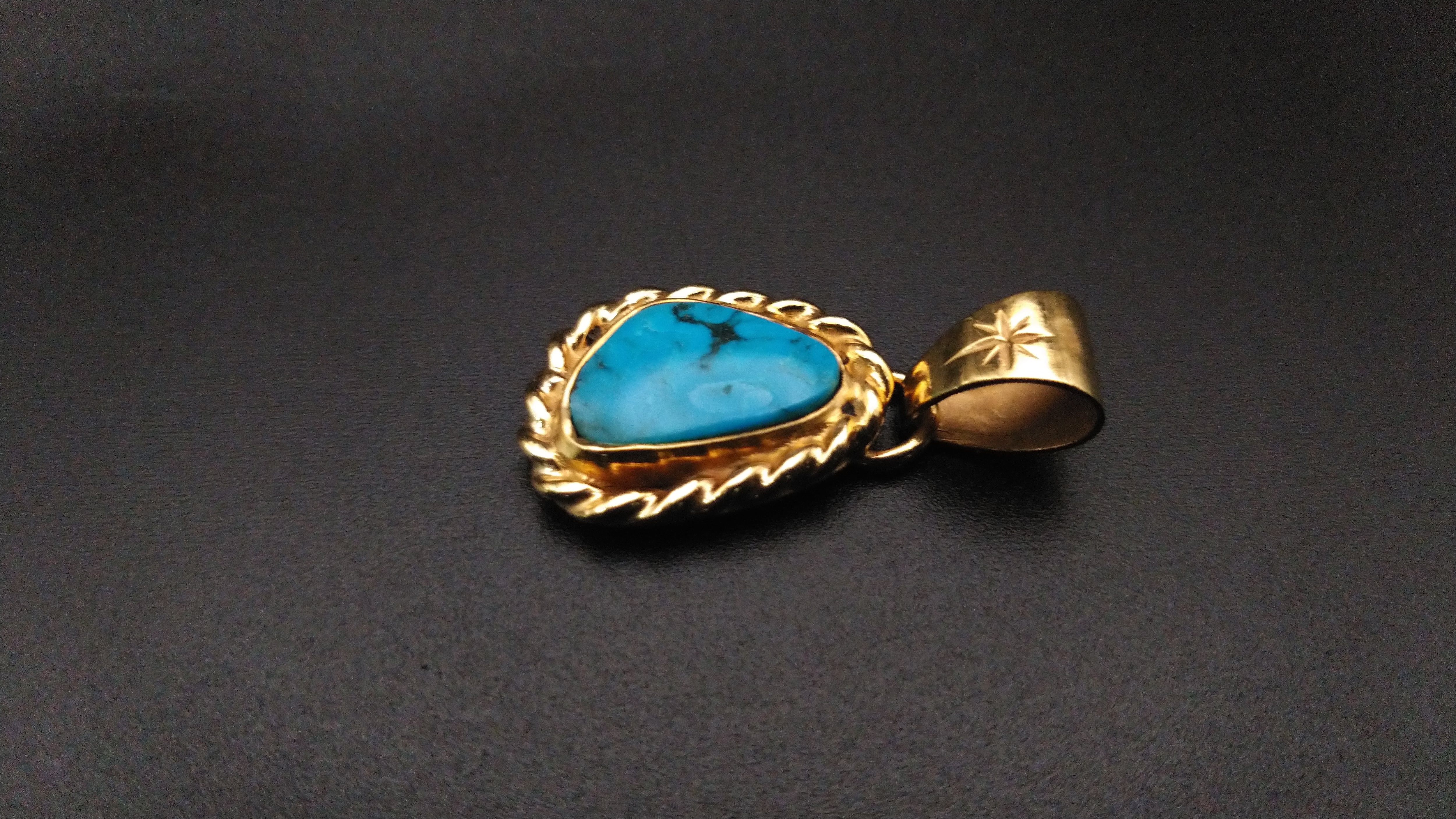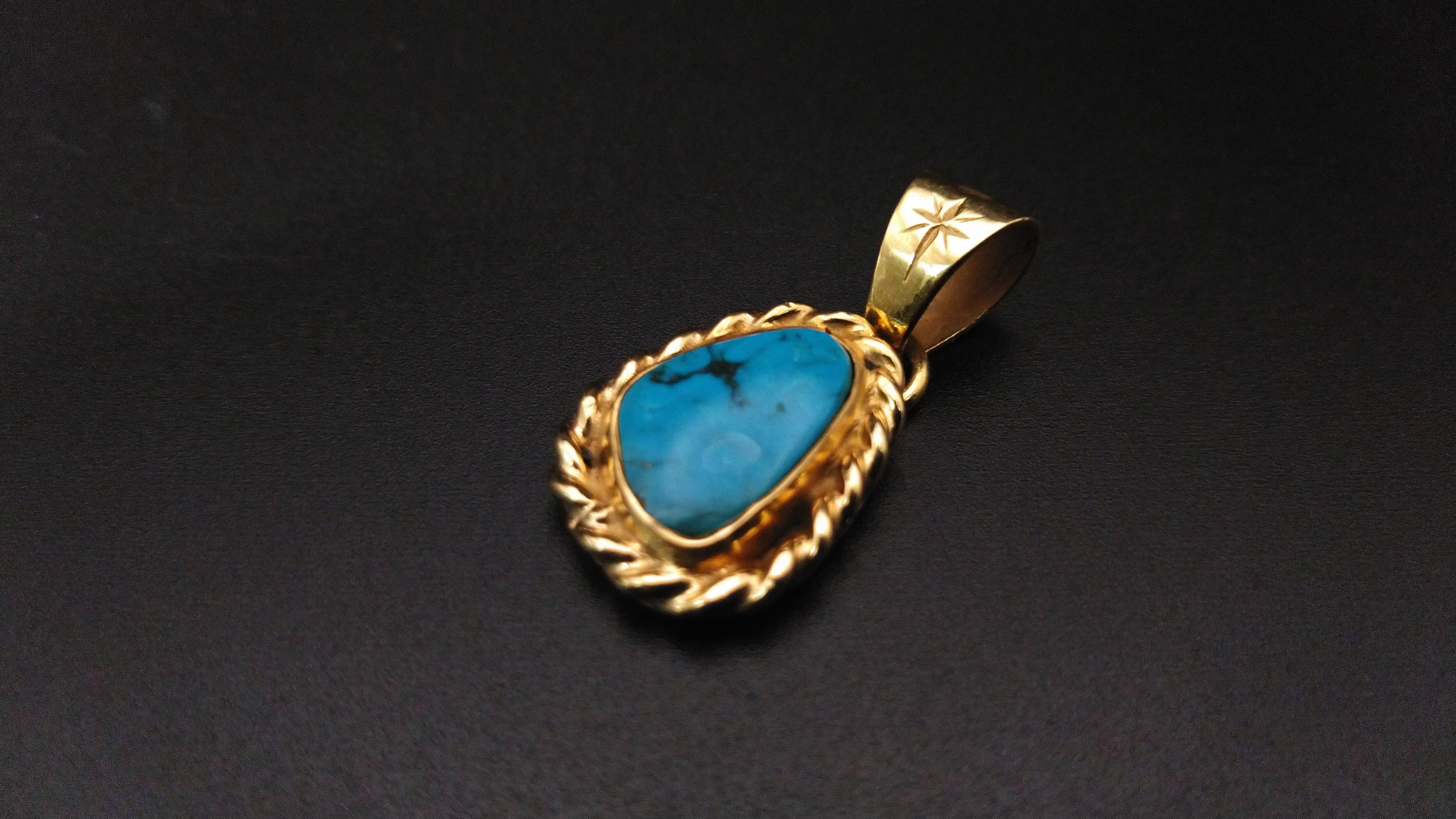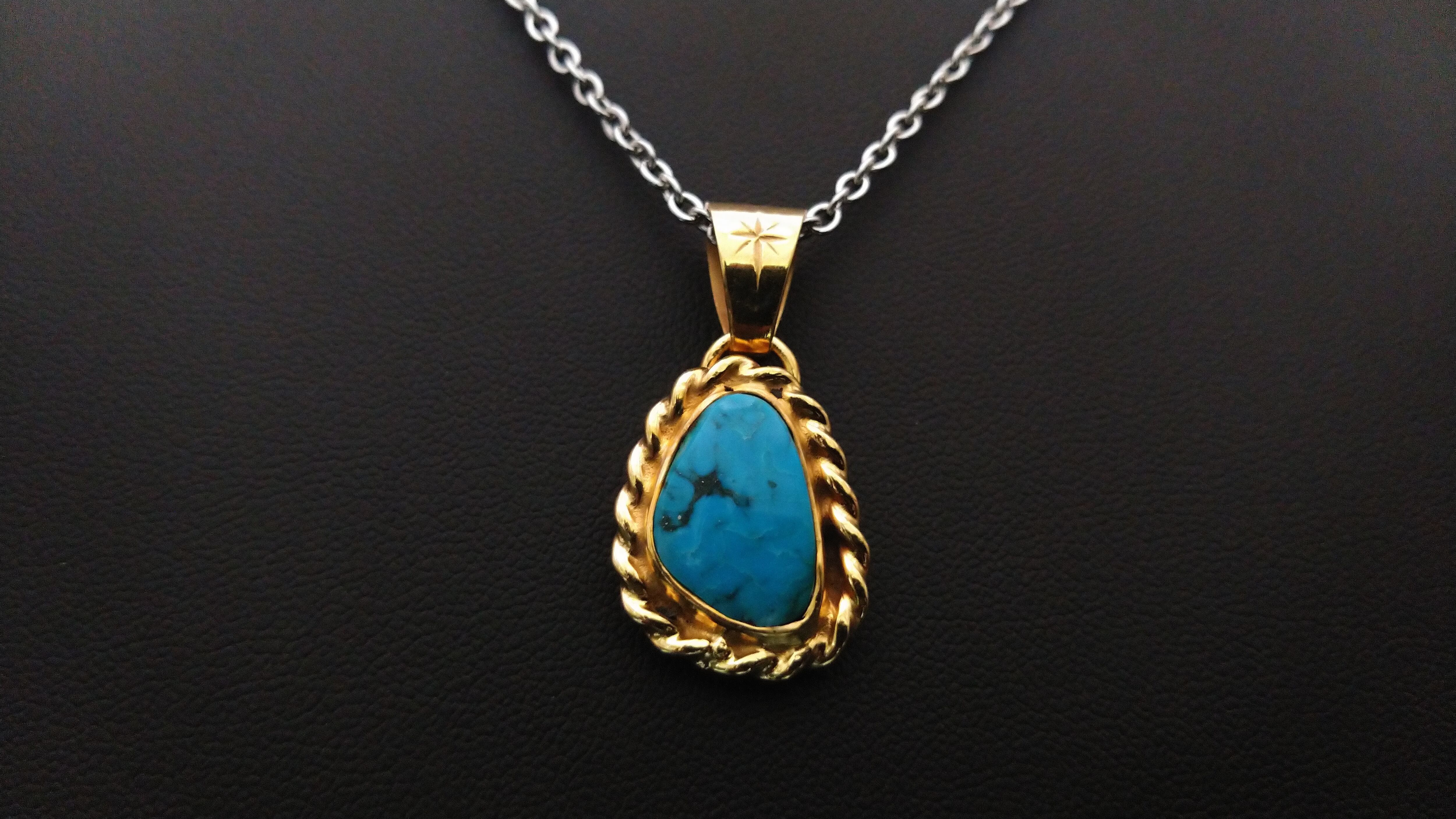 18金とハイグレードのキングマンターコイズを組み合わせて作成した、ゴールドのペンダントヘッドになります