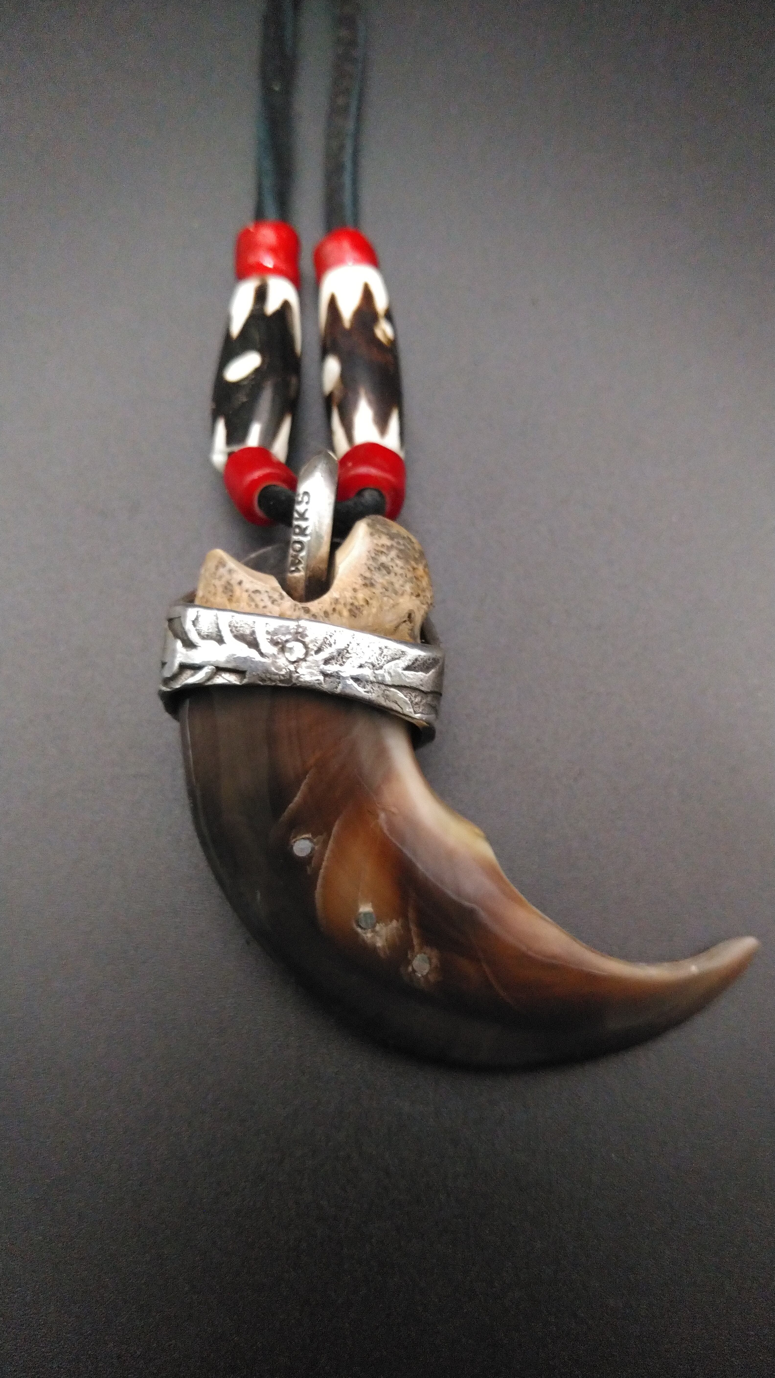 又、付属のヒモにはキャメルボーン(ラクダの骨)をホワイトハートビーズで挟み込んでいます。
