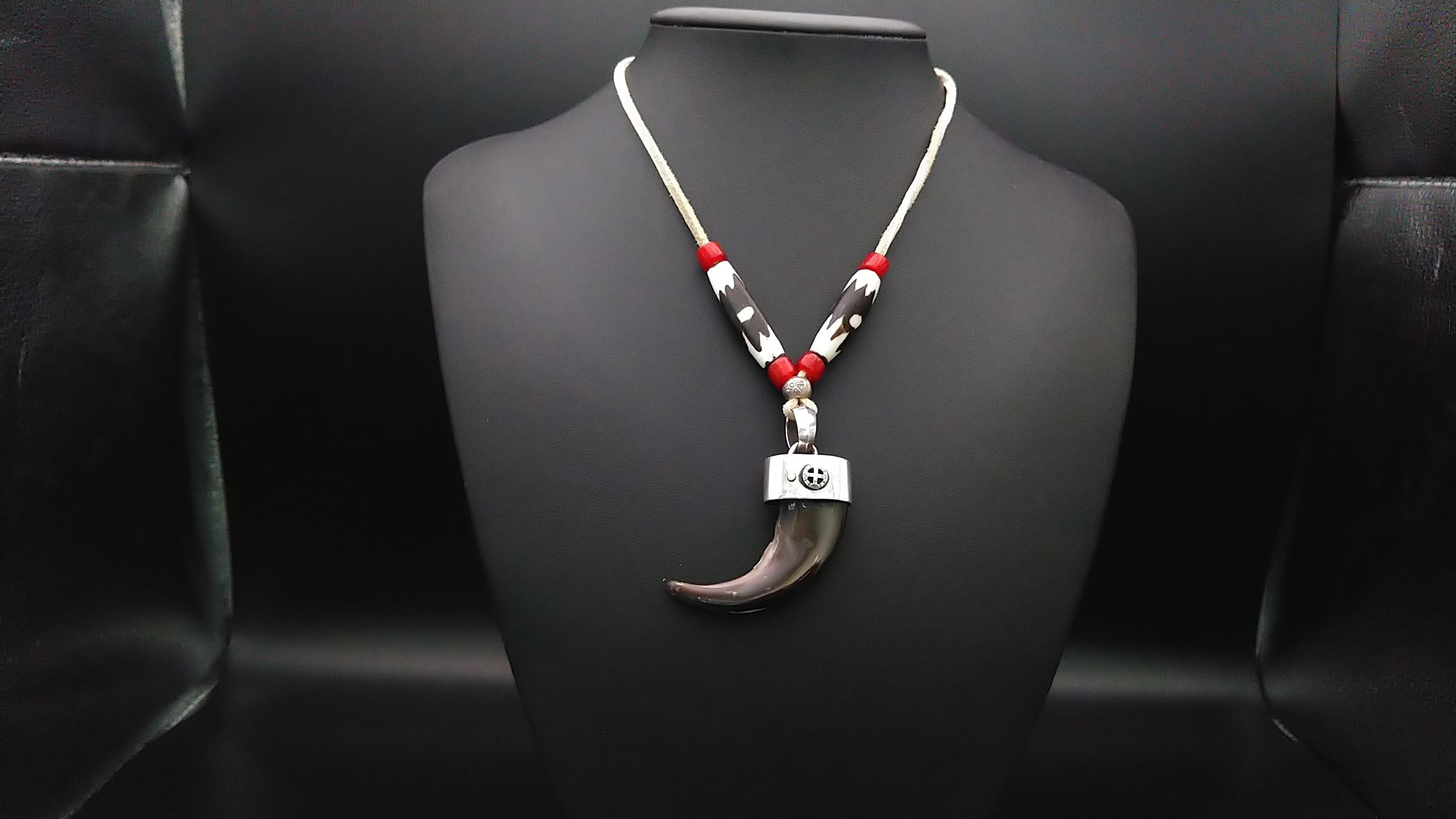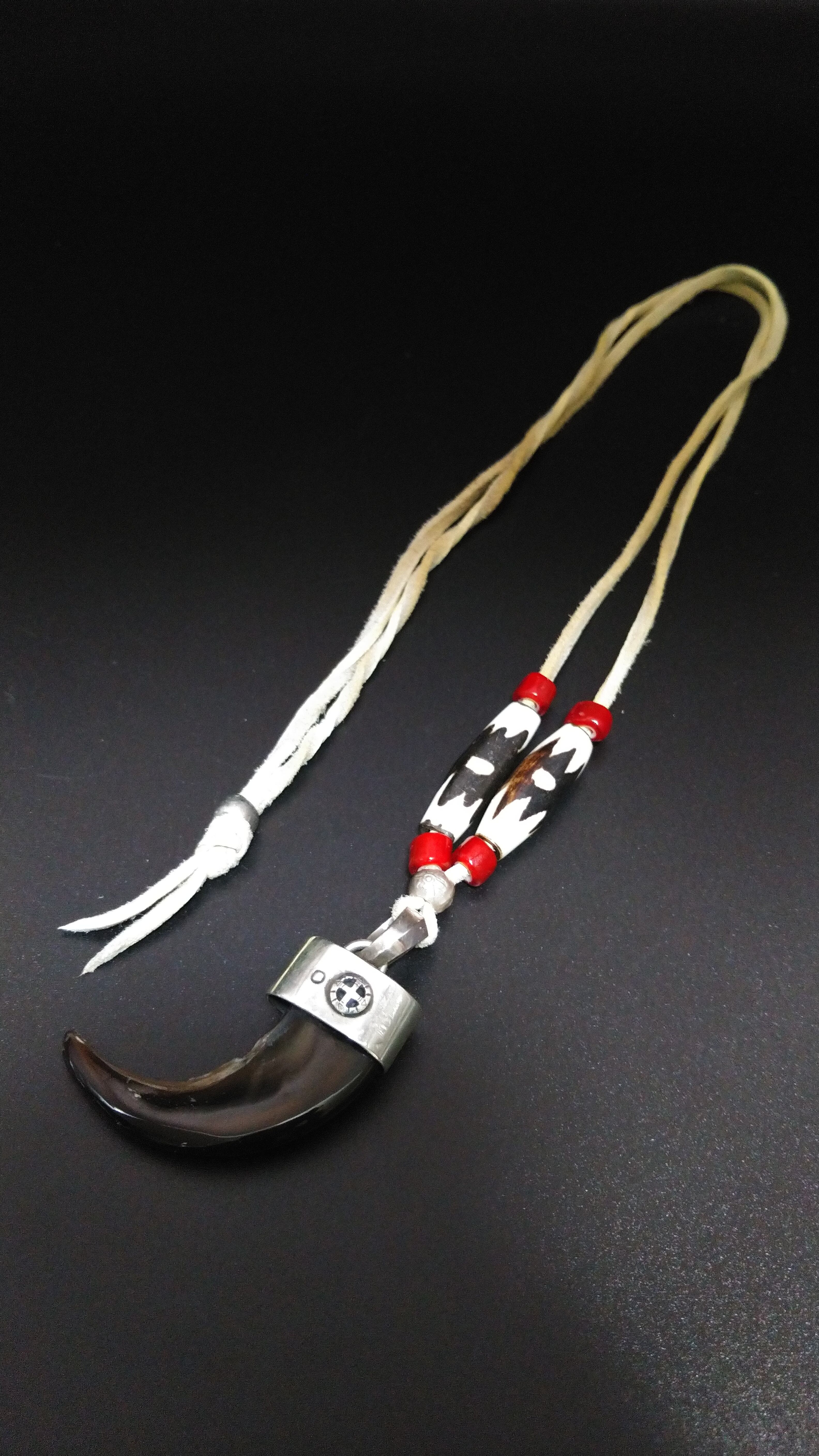 又、付属のヒモにはキャメルボーン(ラクダの骨)をホワイトハートビーズで挟み込んでいます。