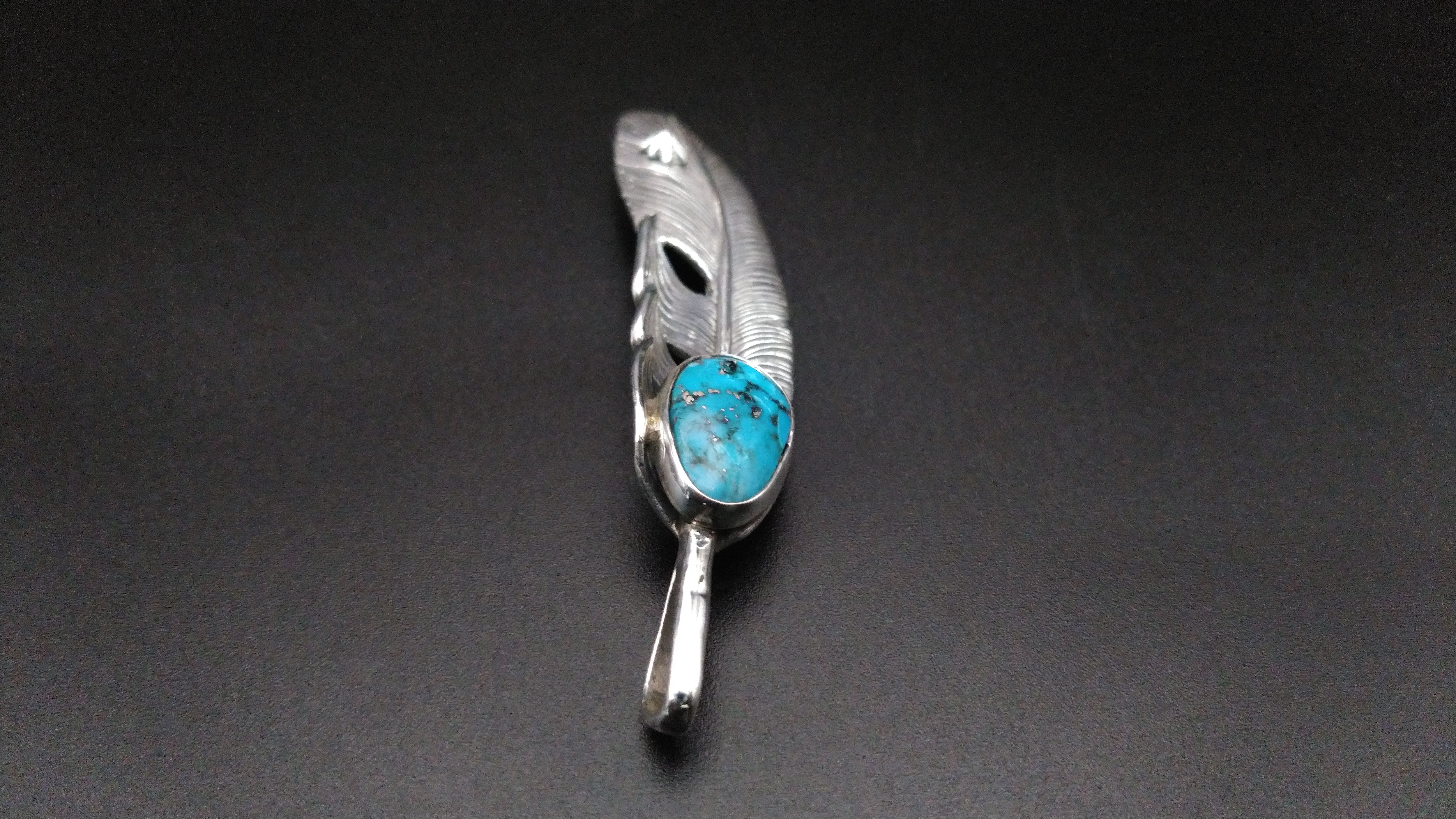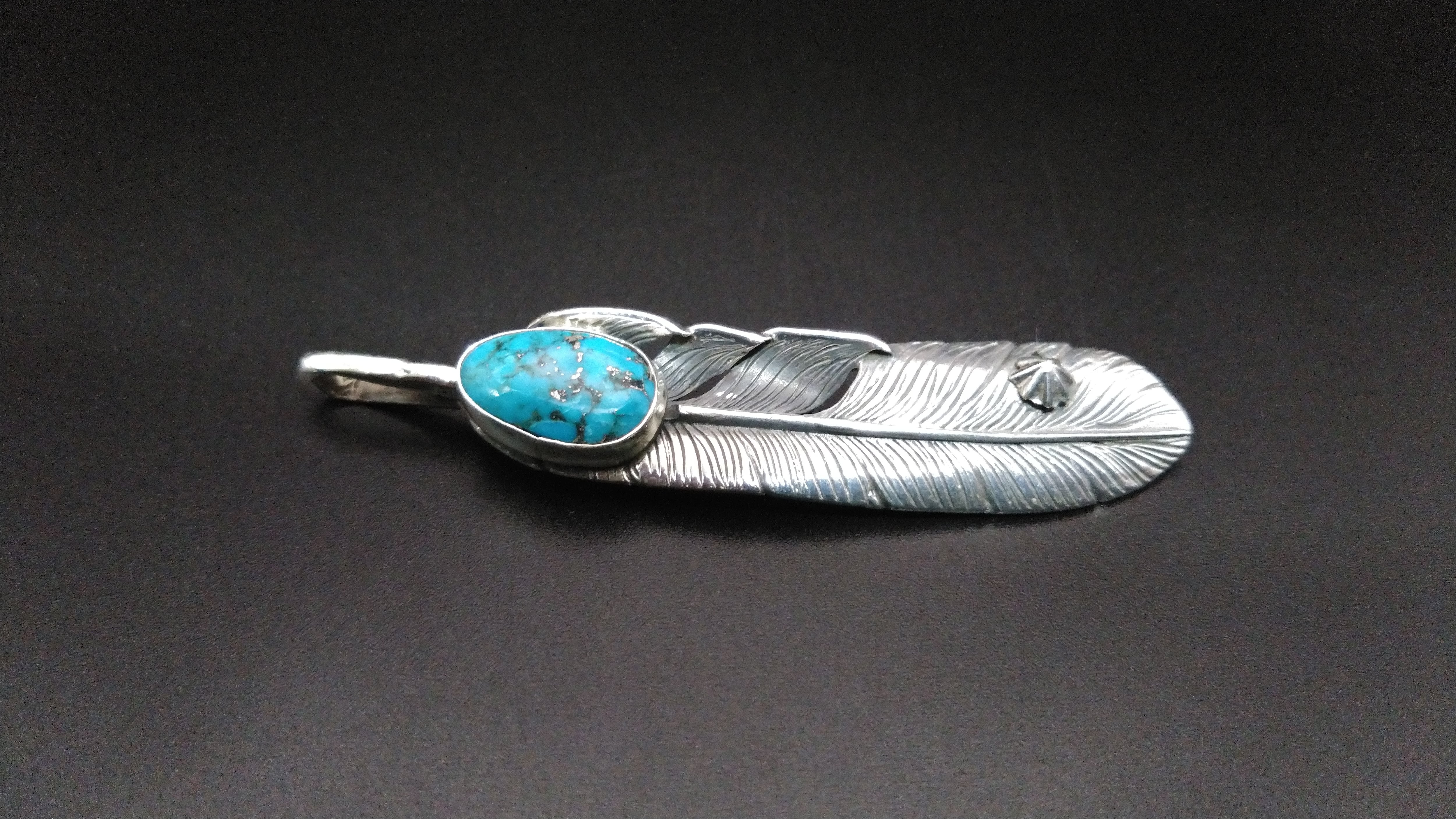 ナンバー8ターコイズ フェザーペンダントトップ【AN-083】