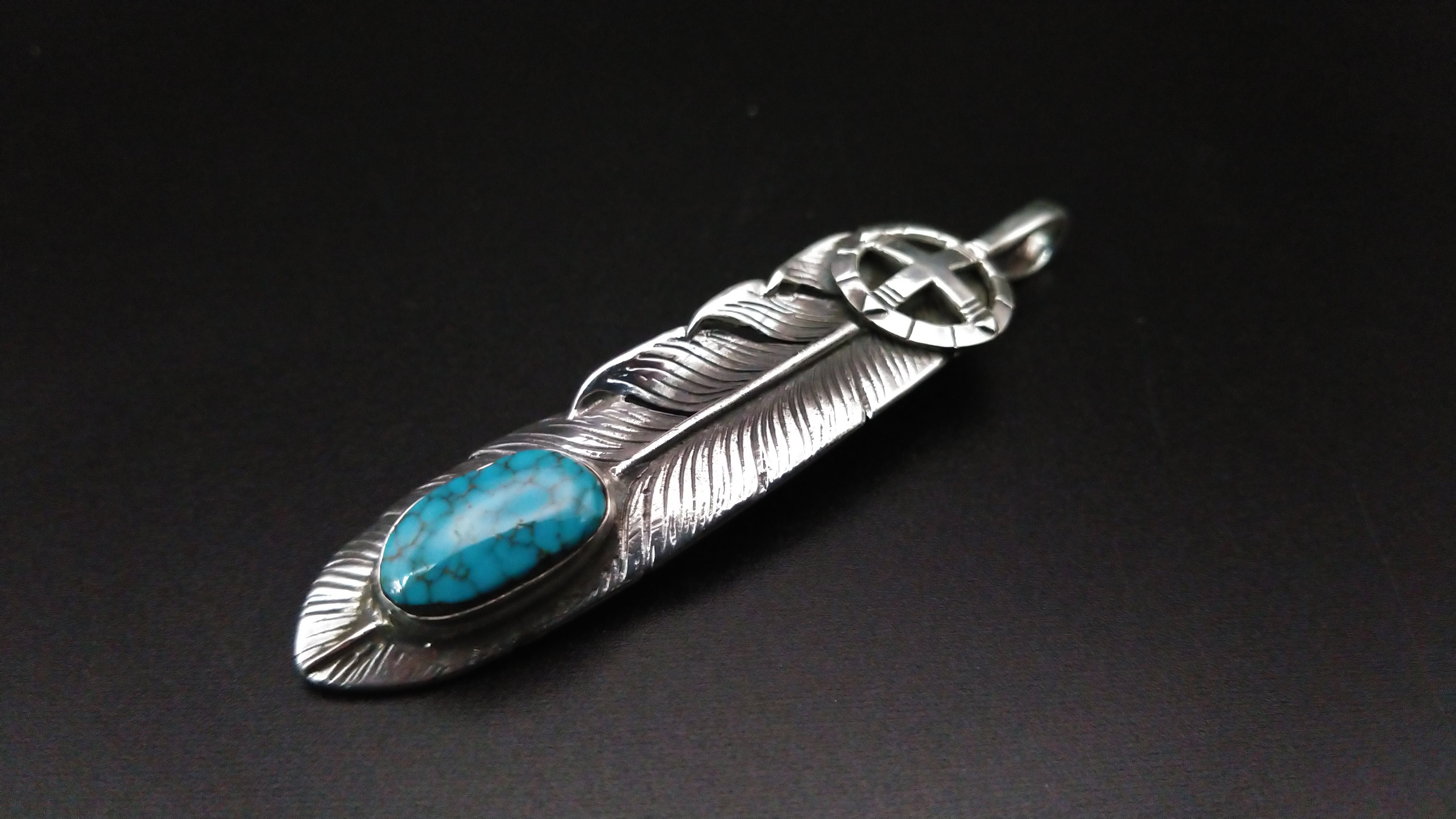 ナンバー8ターコイズ フェザーペンダントトップ【AN-086】